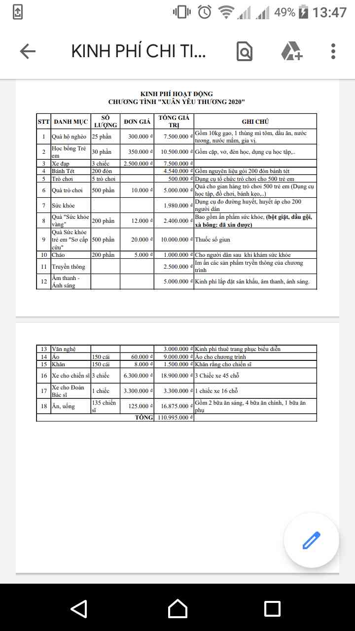 Về kinh phí hiện chúng em đang tổ chức các hoạt động gây quỹ, ước tính hiện nay đã có được 50tr đồng, con số cụ thể ngày thứ 4 tuần này chúng em sẽ có kết quả ạ.