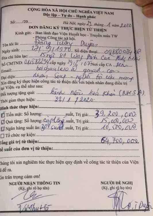 Xin tri ân những tấm lòng thơm thảo tới bệnh nhân khó khăn.