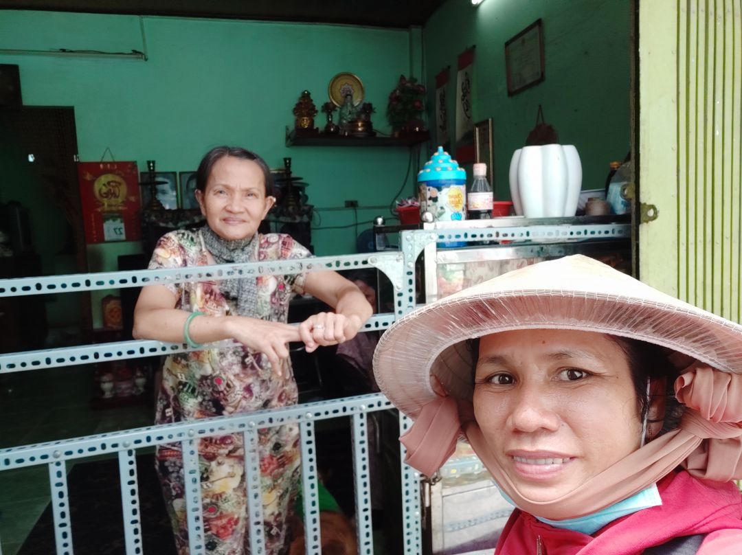hôm nay Mai Trâm có đi ngang đường Trần Phú tiện thể ghé thăm hoàn cảnh của chị Hoa câm điếc nuôi mẹ già 97 tuổi sức khỏe của mẹ chị Hoa thể nào.hiện tại Mẹ chị tuổi già sức yếu bị lú lẫn đập phá đồ lung tung nhất là mặt hàng chị lãnh về nhà làm nên hơn một tháng này chị không dám lãnh hàng gia công về nhà làm nữa gì sợ Mẹ phá hư đồ của chủ chị không có tiền đền.