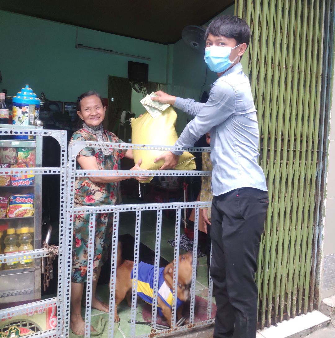 sau khi phục vụ cho bà con xong tại quán cơm SG Mai Trâm cùng em Hùng  đến nhà chị Hoa trao tiền CM cùng gạo.