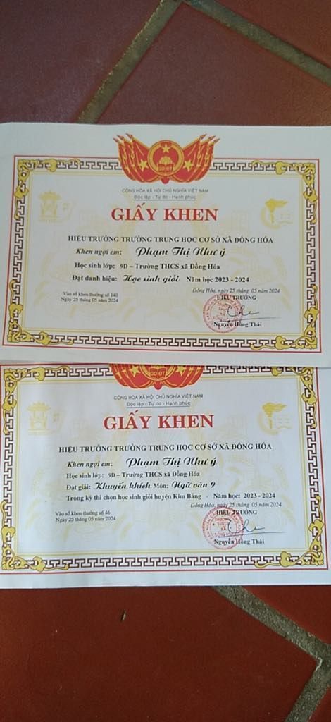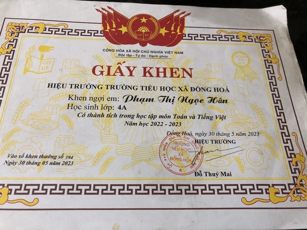 Các cháu vẫn rất chăm ngoan học giỏi các bác ạ. Ngoài bằng khen hs Giỏi thì thì còn các bằng khen của thi cấp trường, huyện, thi chạy ...