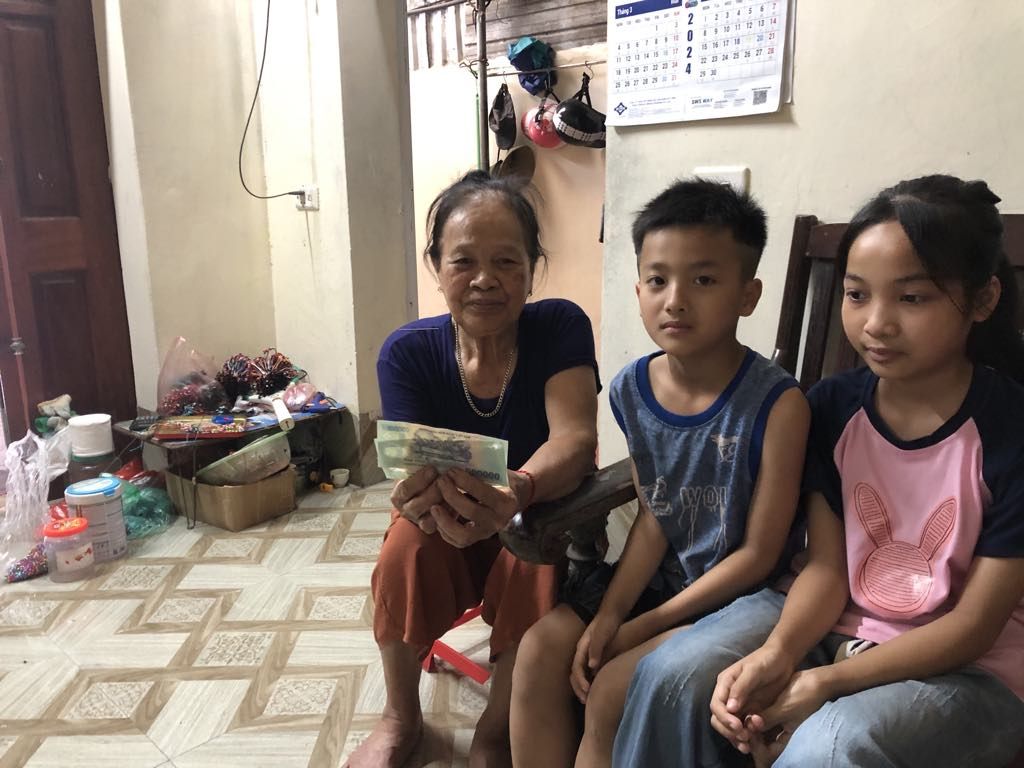 Bố cháu vẫn túc tắc đi làm thêm. Ông và bà yếu nên chỉ ở nhà chăm lo cho các cháu.