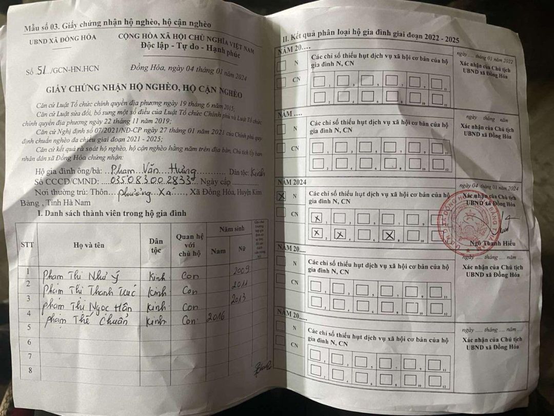 Hiện tại gia đình vẫn thuộc diện hộ nghèo, các cháu học tốt và vẫn cần CMTX.