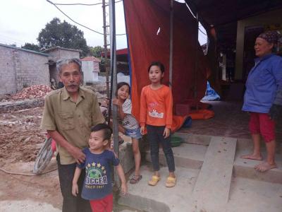 Bác phạm văn trò. Ông nội của 4 cháu  sn 1952 gần 70 tuổi. Lăn lộn mưu sinh bằng việc cấy 6 sào ruộng. Và thỉnh thoảng đi phụ hồ thu nhập tháng 2tr600 ngàn đồng.  Tất cả gia đình sống trong căn nhà thờ tổ họ phạm đóng góp. Và để gđ sống và trông coi nhà thờ. Quét dọn lau chùi. Thương nhất là 4 cháu nhỏ.