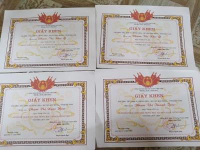 Chị Ba hết lớp 1 đạt Giấy khen học vượt trội môn Tiếng Việt.