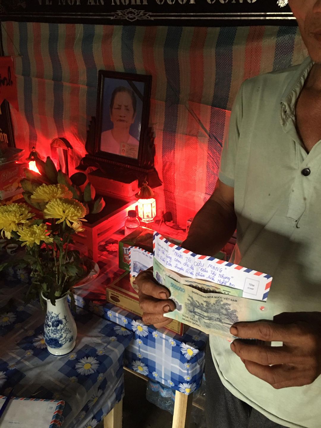 Hôm trước con tới thì bà đã yếu lắm rồi, không tự ngồi dậy được nữa. Cũng không nhận ra mọi người xung quanh nữa.. không biết bà còn sống được bao lâu nữa không.. bà ăn ít và ăn kém lắm.. hàng xóm hay mang thức ăn của bà cũng đi làm cả ngày, cũng k tận tình chăm sóc bà được, con đến thì phải nhờ người hàng xóm khác nữa để nâng bà dậy, lấy đồ cho bà ăn. Bà yếu lắm rồi ạ.. Thay mặt bà, con cảm ơn chị Trieuquang và cả nhà đã quan tâm, giúp đỡ bà. Con đã trao xong 3 tháng 1, 2, 3. Sang tháng 4, con mong sự giúp đỡ của c Trieuquang và cả nhà trong những tháng tiếp theo ạ!. Con cảm ơn ạ!