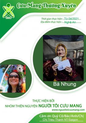 Cụ ĐẬU THỊ NHUNG (Nữ 1930) - neo đơn, chồng mất trong chiến tranh, không con cái, không họ hàng gần nhà
