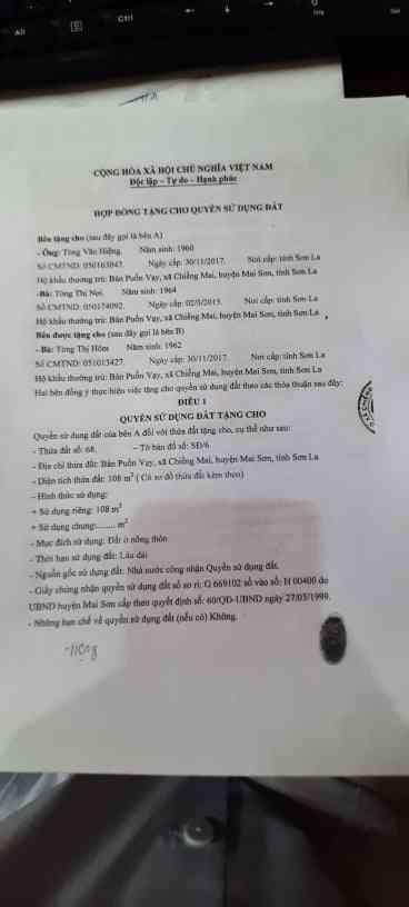 UBND xã Chiềng Mai huyện Mai Sơn, tỉnh Sơn La đã có văn bản nhất trí cho triển khai giúp đỡ Bà Hôm và có hợp đồng tặng cho Quyền sử dụng đất giữa Gia đình Ông Tòng Văn Hiệng và bà Tòng Thị Hôm.
