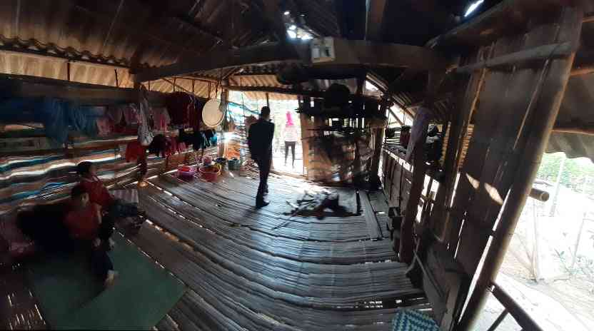 -   Bà Hôm ở trong một lán nhỏ che chắn bằng bạt và tre xung quang, trời mưa thì trong nhà cũng như ngoài sân, tài sản của bà Hôm ngoài chiếc đệm và mấy cái xong nồi, thùng nhựa cũ kỹ thì bà không còn gì khác.