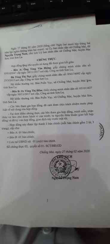 UBND xã Chiềng Mai huyện Mai Sơn, tỉnh Sơn La đã có văn bản nhất trí cho triển khai giúp đỡ Bà Hôm và có hợp đồng tặng cho Quyền sử dụng đất giữa Gia đình Ông Tòng Văn Hiệng và bà Tòng Thị Hôm.