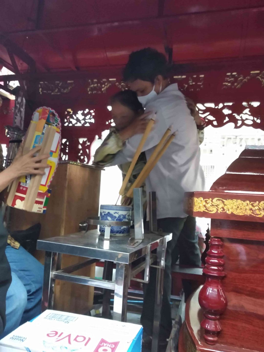 Đám tang đơn sơ chỉ có 2 người phụ nữ trong đó 1 người thì mù, việc liên hệ hoàn tất các thủ tục trong thời điểm dịch bệnh hoàn toàn nhờ vào sự giúp sức của cậu cháu bà con cùng bà con chòm xóm.