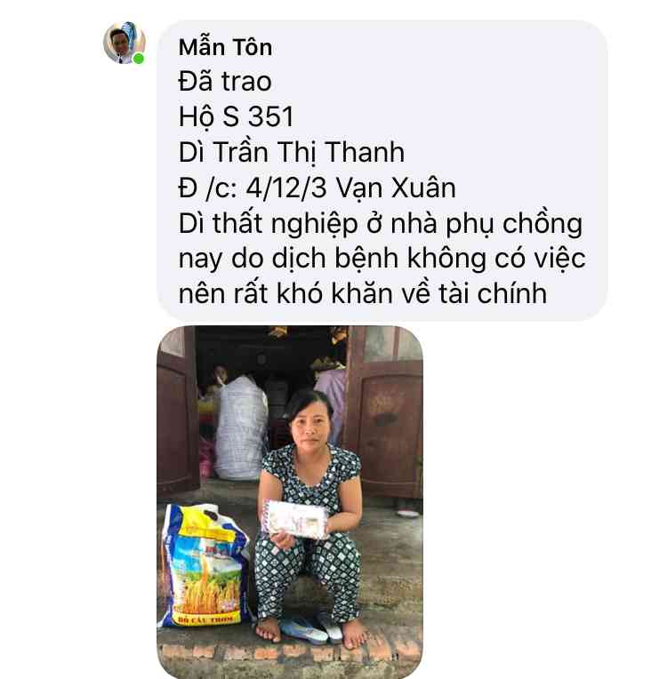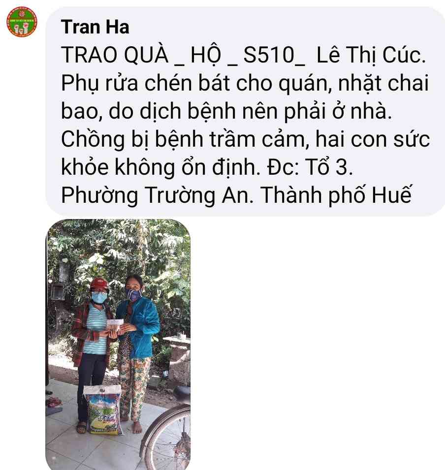 Cảm ơn Tran Ha đã thực hiện chương trình giúp đỡ các hoàn cảnh khó khăn trong mùa dịch  và kêu gọi ủng hộ .