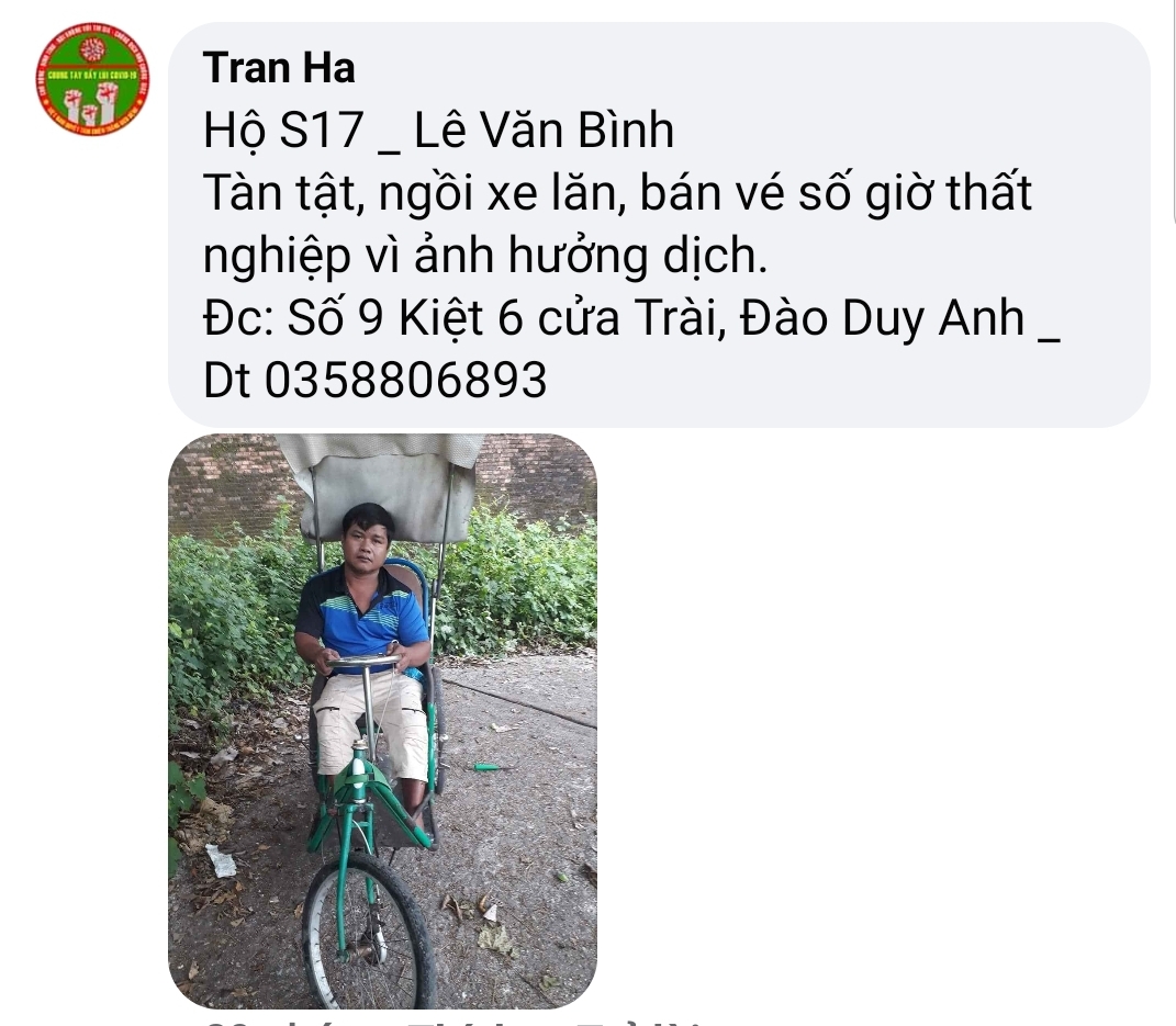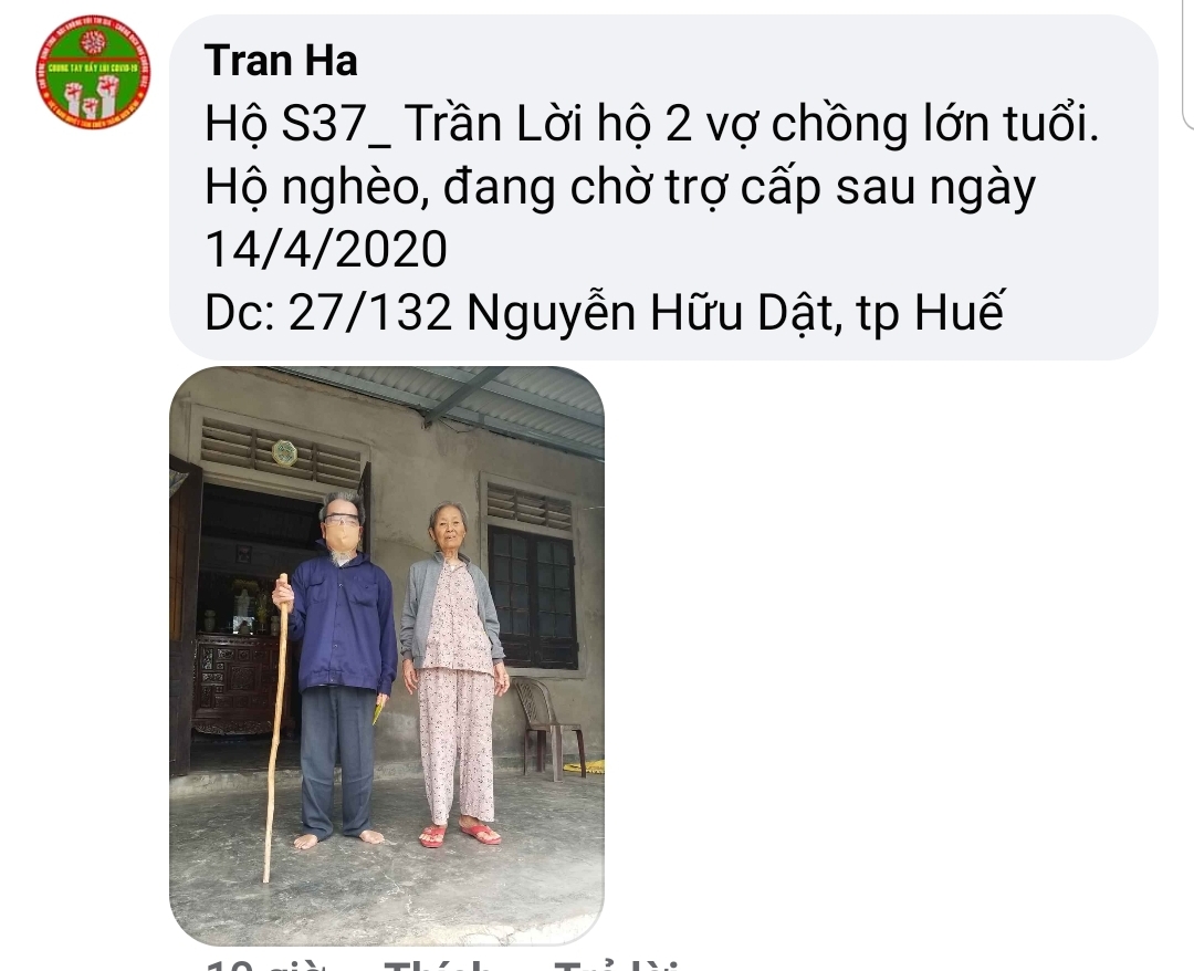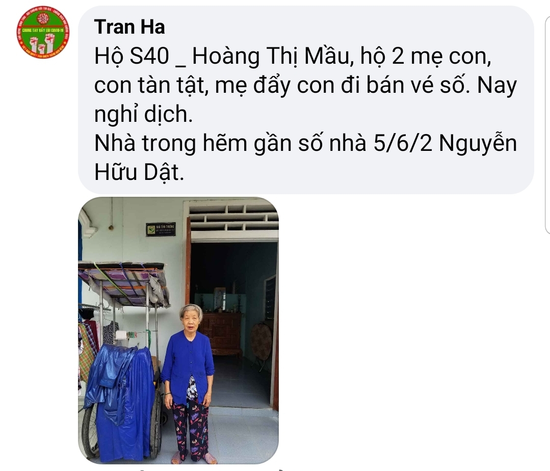 Hiện vừa ghé vào hôm trước để xác minh thì hai cụ đã mất, chỉ còn con gái nhưng bị tâm thần, đi mãi không gặp được, trợ cấp xã hội có, ngoài ra cô ấy cứ đi lang thang hàng quán chợ búa ai cho gì ăn đó. Hàng xóm láng giềng cưu mang là chủ yếu. Hiện đang dịch, cả ngày đi không biết còn có cái mà ăn không!