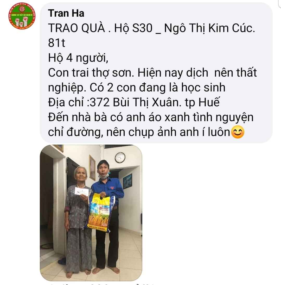 Các bạn TNV tại Huế chạy chương trình giúp đỡ những hoàn cảnh khó khăn trong mùa dịch Covid-19 rất nhanh và nhiệt tình.