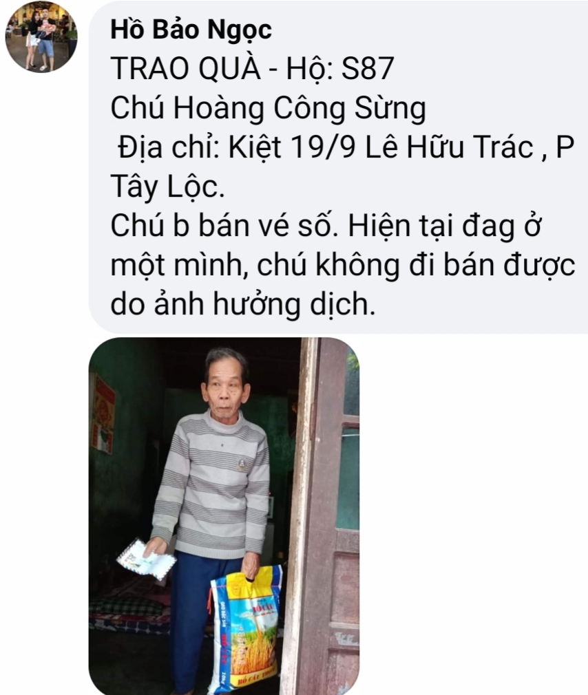 Nhóm NTCM _ Huế xin cập nhật thông tin trao quà từ Hộ: Hộ S87 ĐẾN Hộ S96