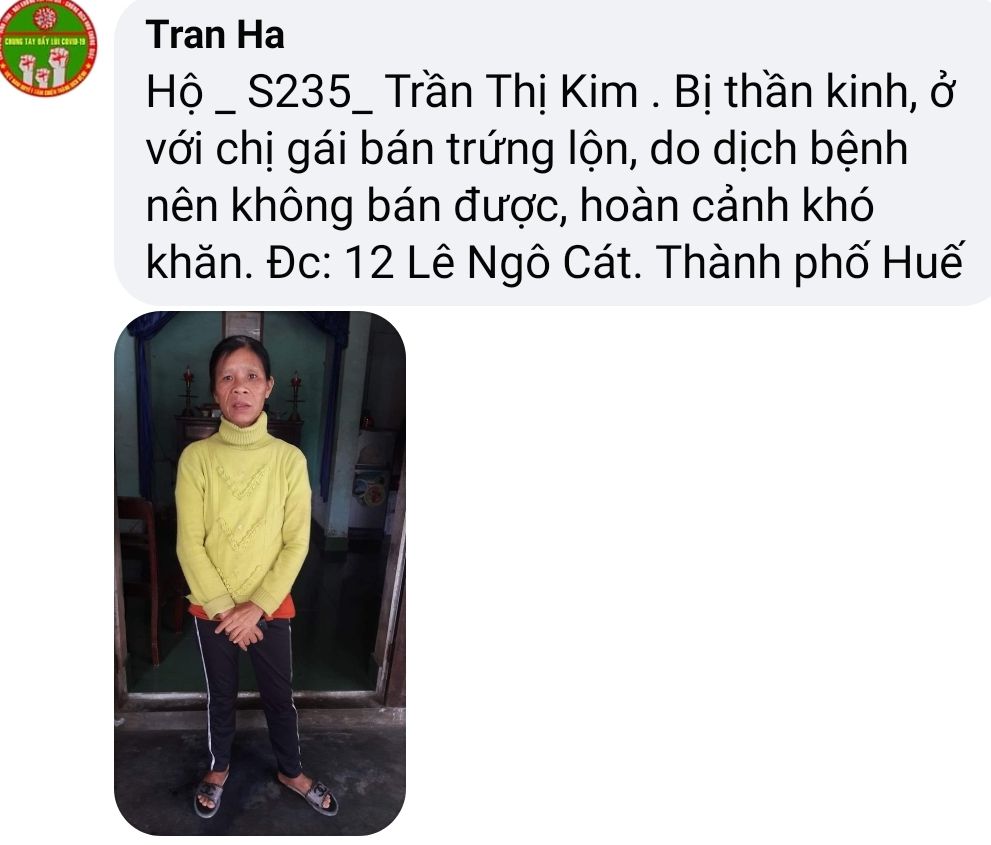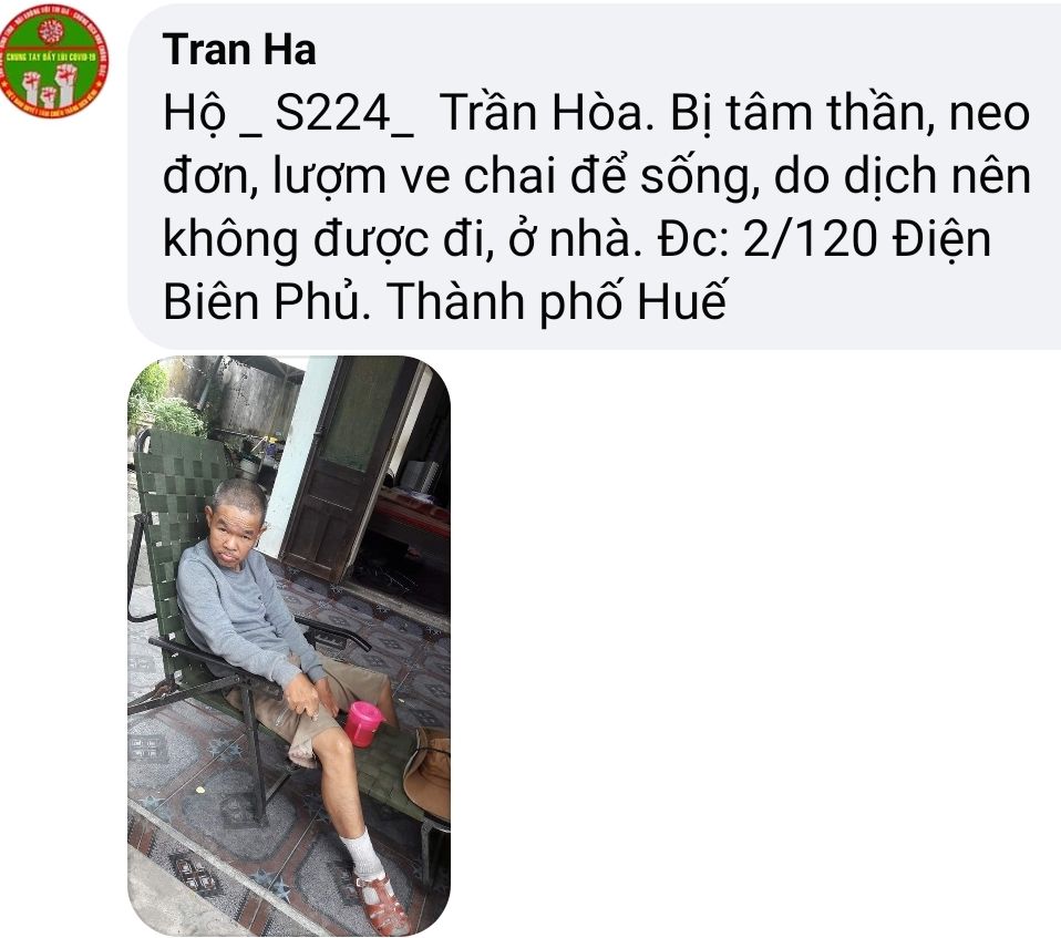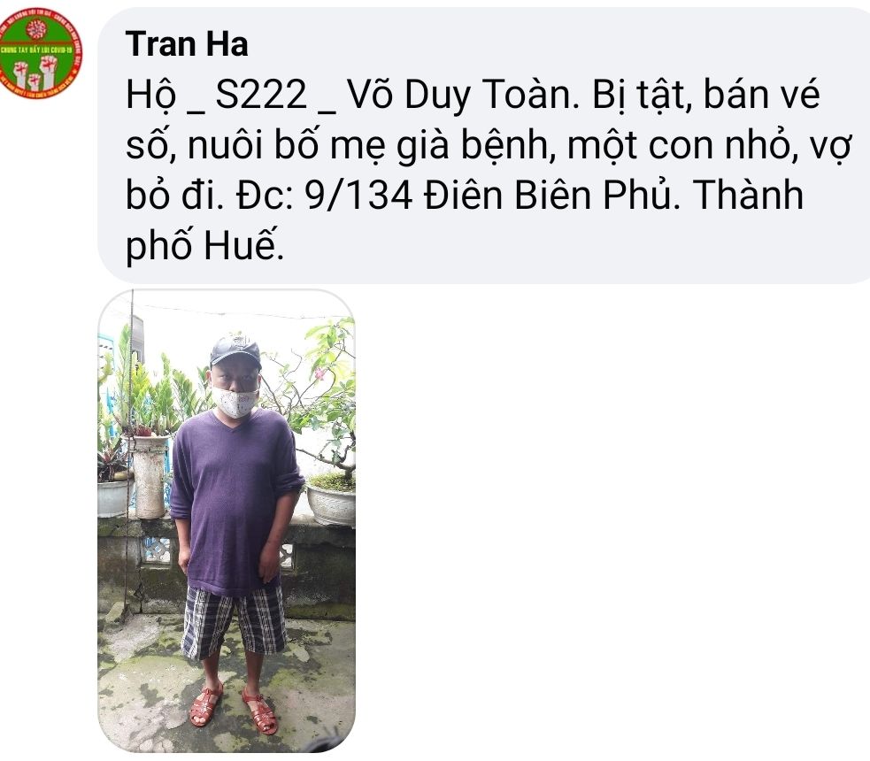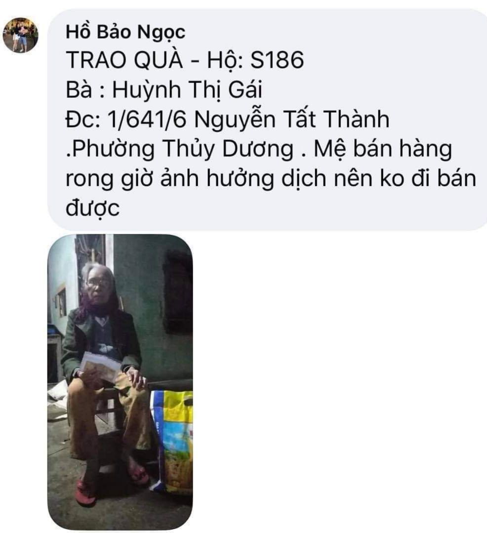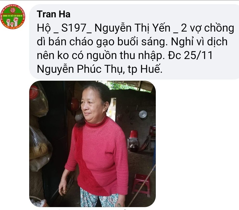 Thưa cả nhà! Hiện nay, nhóm NTCM_ Huế đã trao được 186 suất quà đến tay 186 hộ dân có hoàn cảnh khó khăn, neo đơn, thất nghiệp, ...., có ảnh hưởng trong đợt dịch bệnh Covid_19. Và con số 186 đã gần chạm mốc 200 suất mà em đã đề xuất qua II đợt.