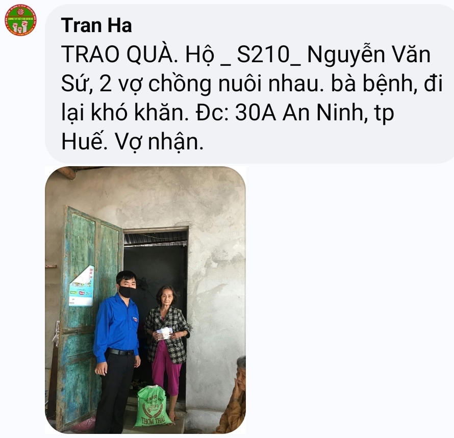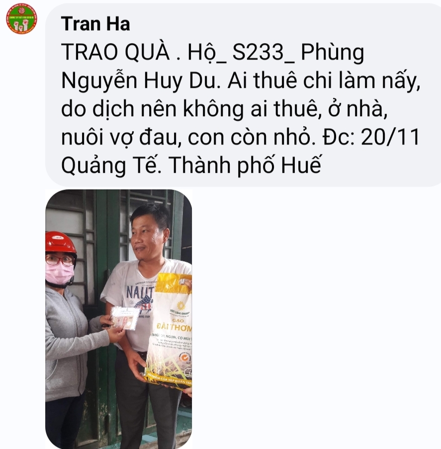 Để tất cả mọi hoàn cảnh được nhanh chóng kịp thời có lương thực và kinh phí chi trả đôi phần cuộc sống, nhóm tnv Huế sẵn sàng dành thời gian trong cuối tuần để chạy hết tất cả hoàn cảnh đang  chờ đợi hỗ trợ
