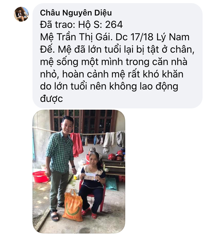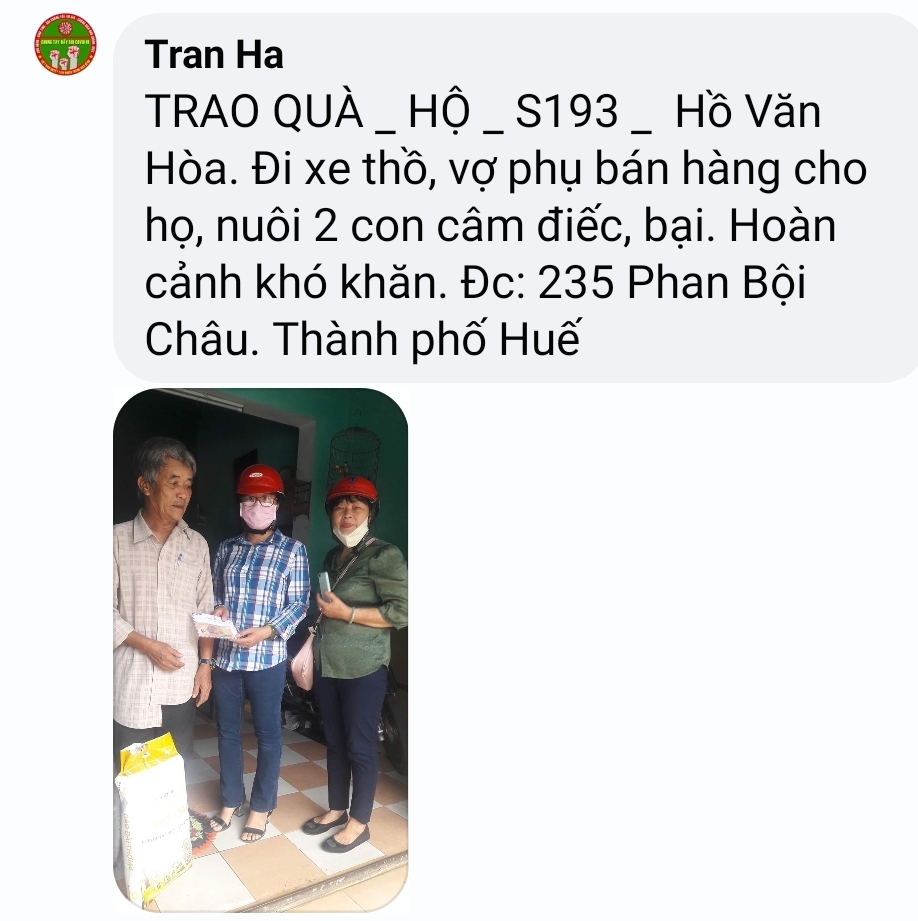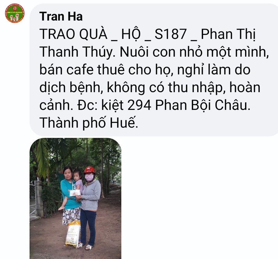Để tất cả mọi hoàn cảnh được nhanh chóng kịp thời có lương thực và kinh phí chi trả đôi phần cuộc sống, nhóm tnv Huế sẵn sàng dành thời gian trong cuối tuần để chạy hết tất cả hoàn cảnh đang chờ đợi hỗ trợ
