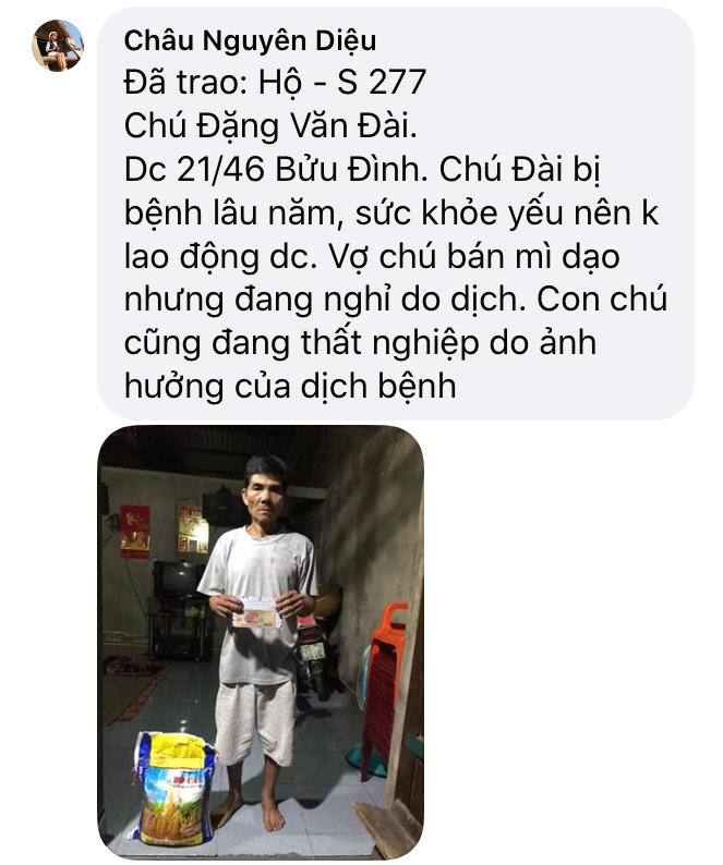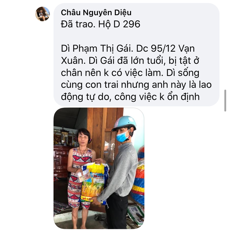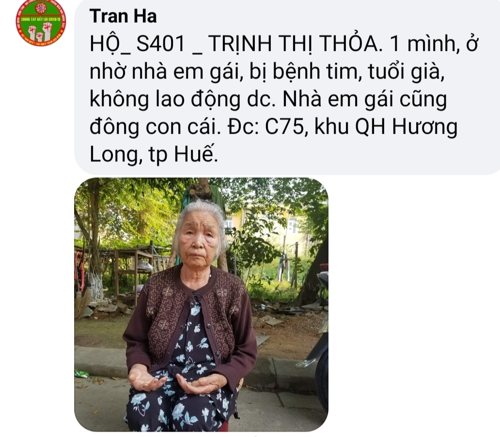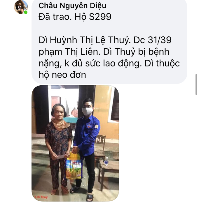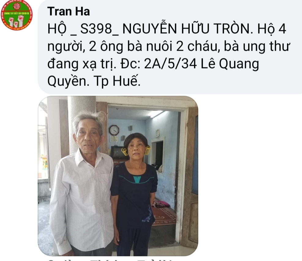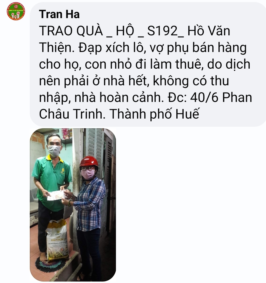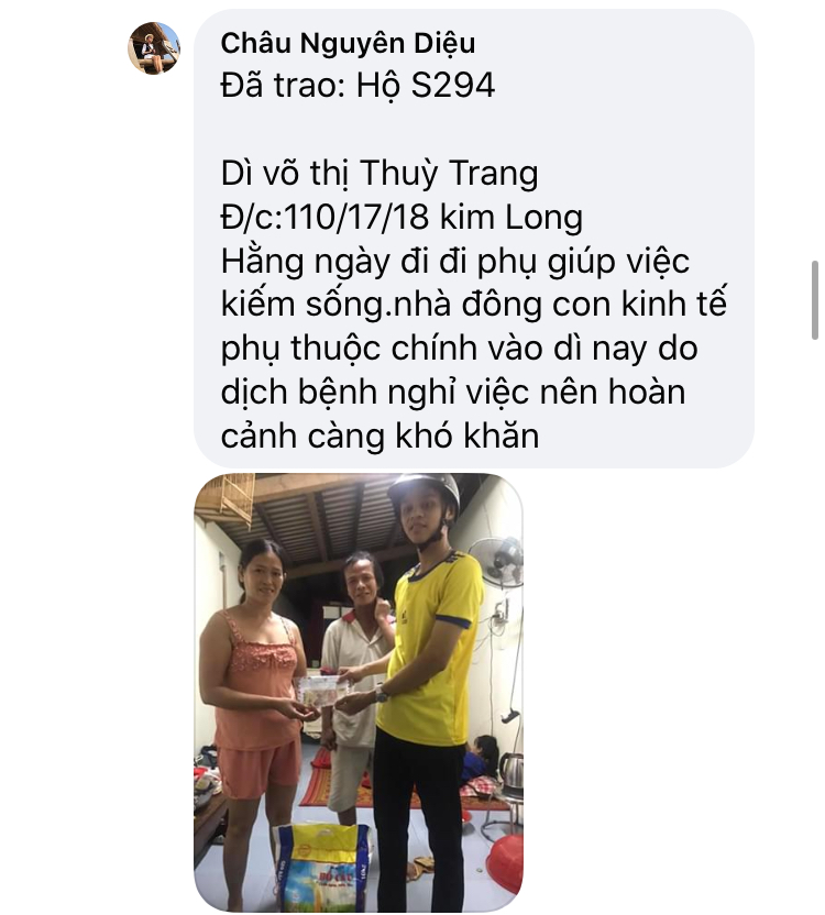 Thật lòng các bạn tnv NTCM HUẾ có người còn độc thân, có người có gia đình con nhỏ, lúc đại dịch đang hoành hành cả nước buộc giãn cách xã hội, ai cũng sợ bệnh - sợ đau - sợ chết, lúc tham gia hương trình ai cũng bị gia đình phản đối vì khi xác minh, trao quà nguy cơ mắc bệnh rất cao, nhưng một lòng muốn chung tay chia sẻ góp chút công mọn làm nên 1 chương trình nhân văn nên Mọi sự cản ngăn điều được hoá giải bằng những công việc cụ thể giúp người!
