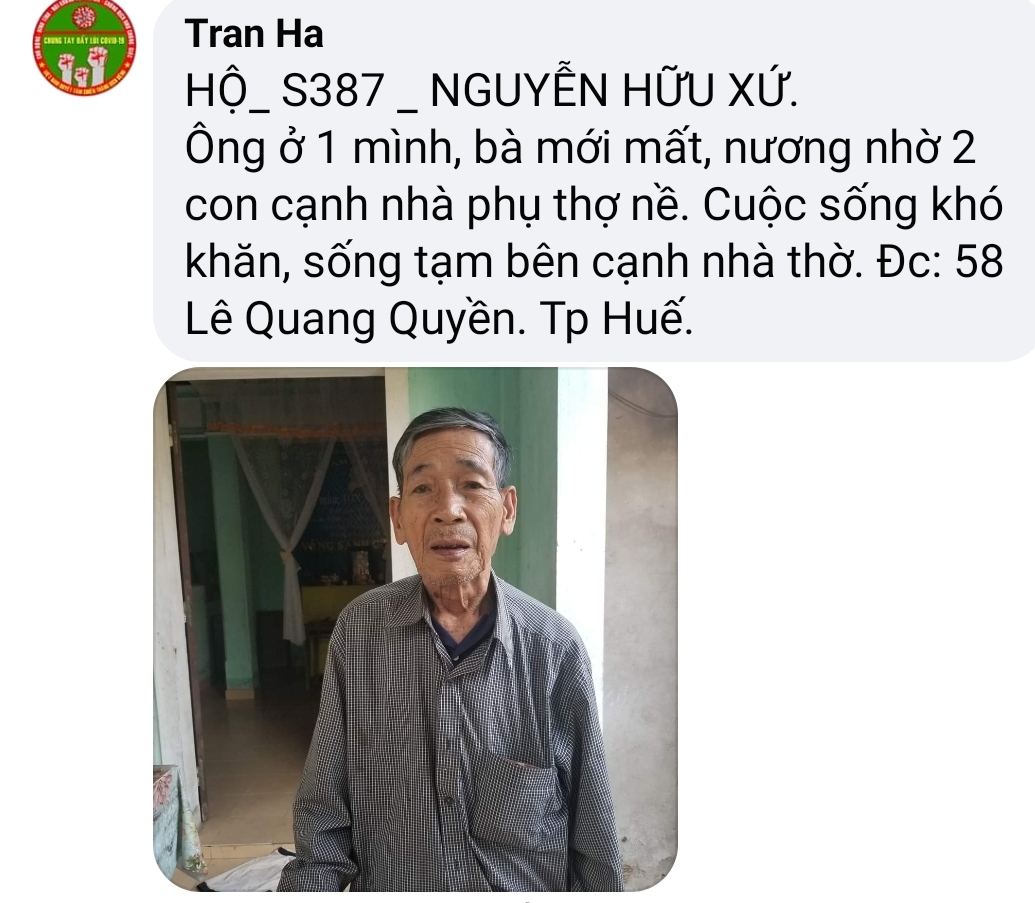 Từ khi bắt tay cùng các bạn thành viên NTCM tham gia dự án hỗ trợ người dân Huế mùa dịch Covid, đi khảo sát sâu sát từng nhà, từng hộ dân, chụp từng tấm ảnh và hiểu hơn về hoàn cảnh của từng gia đình đang khó khăn trong mùa Covid bản thân e và các bạn tình nguyện tại Huế ai cũng buồn và thậm chí ám ảnh bởi những Hoàn cảnh quá khổ và quá bi đát!