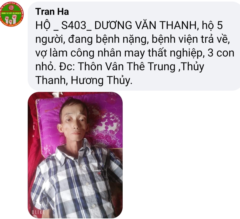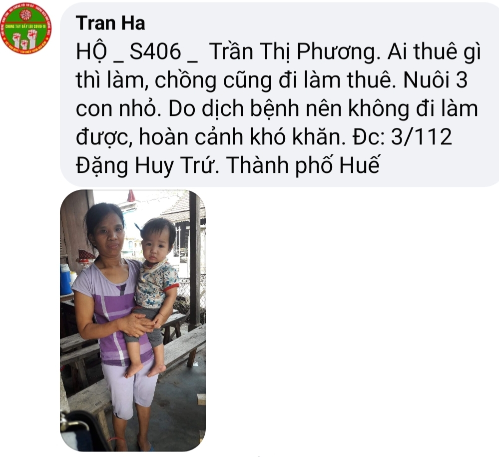 Huế quê em, nghèo rất nghèo quanh năm mưa dầm ‘Thúi ‘đất, nắng cháy kho da! Người dân đa phần sống bằng nghề lao động vất vả,! Vài năm trở lại đây dân Huế đỡ khổ hơn chút nhờ du lịch Huế phát triển, Người Huế có thêm chút công việc mưu sinh, tưởng chừng cuộc sống chăm chỉ làm ăn sẽ thay đổi được cuộc sống ai ngờ dịch bệnh ập đến, bà con thất nghiệp, nhà nhà thiếu ăn!