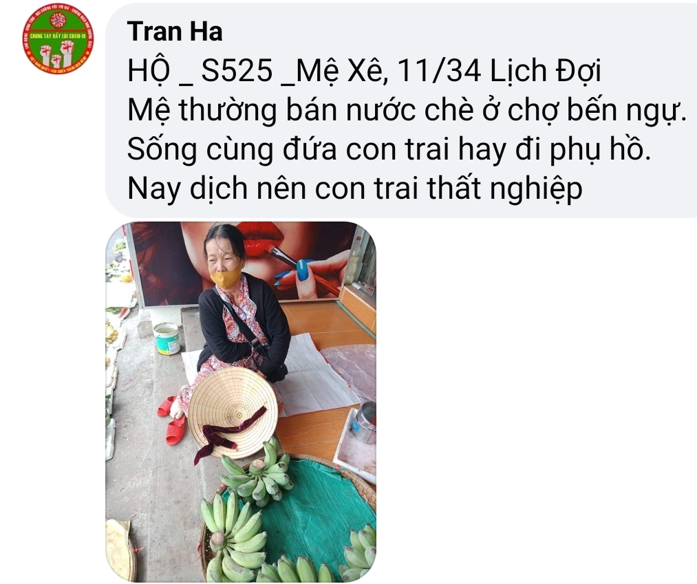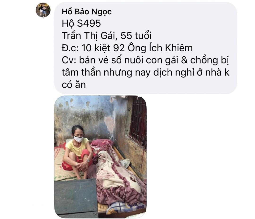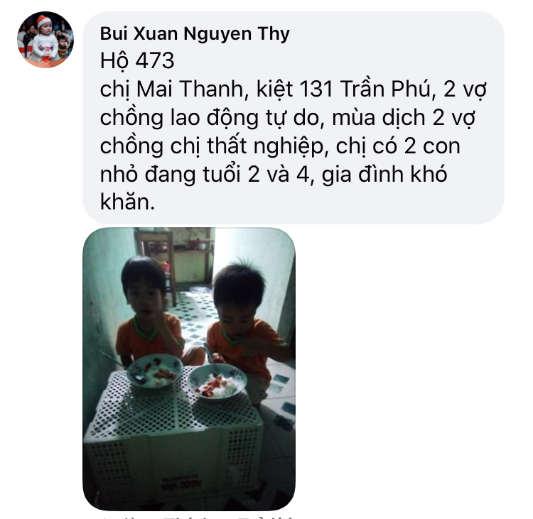 Nhà chú ở số 6 đường Nguyễn Hoàng. Một căn nhà dưới mức cấp 4. Tuy mặt tiền nhưng khu này heo hút dân sinh Đời sống thấp. Chú đạp xích lô dạo nuôi gia đình, nay dịch đứt nguồn thu nhập, vợ không nghề nghiệp bán hàng ăn vặt ở nhà bữa sáng cũng phải đóng cửa. Gia đình này nghèo, đắp đổi tự nuôi thân Làm hôm nay lo ngày mai; Lo con cái học hành không dư nổi.