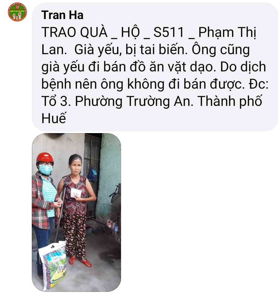 Cảm ơn Tran Ha đã thực hiện chương trình giúp đỡ các hoàn cảnh khó khăn trong mùa dịch  và kêu gọi ủng hộ .