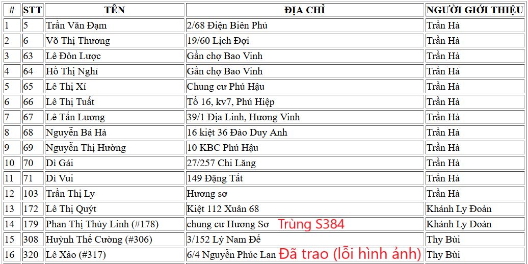 E xin cập nhật những trường hợp đã được trao quà ngày 20/4