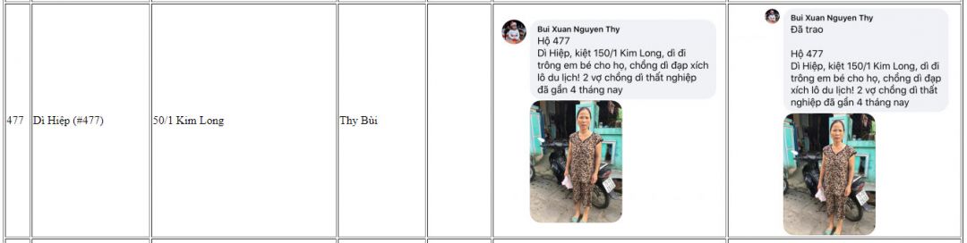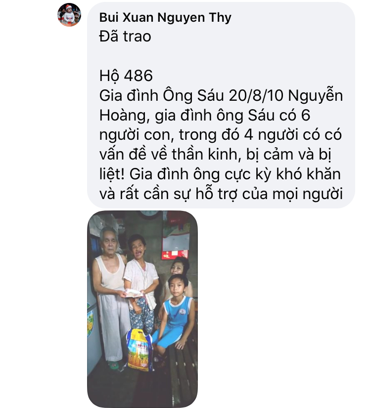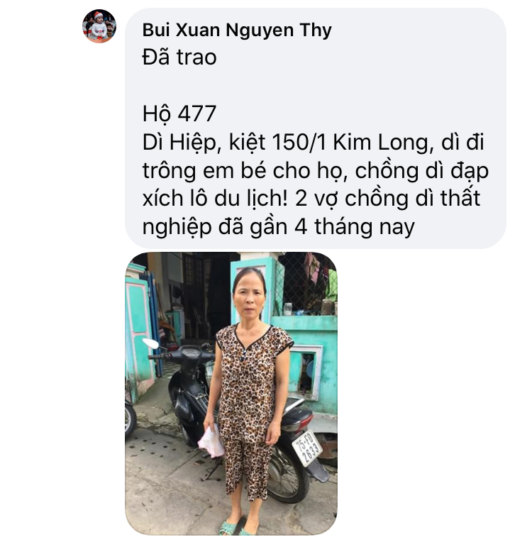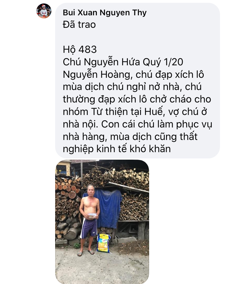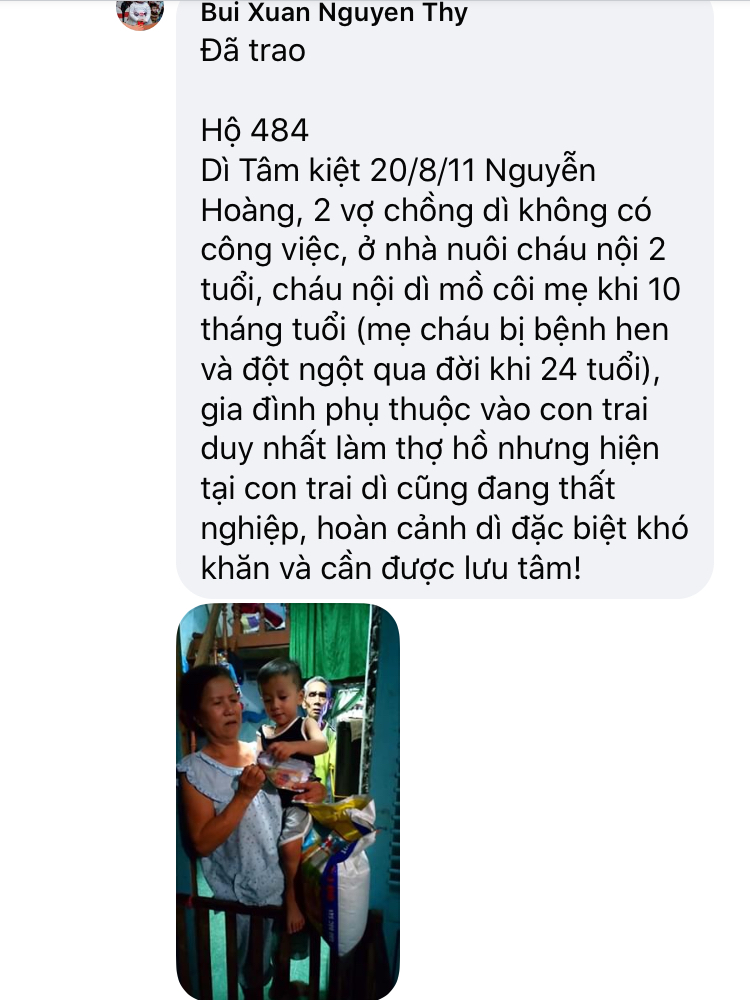 Hiện tại có nhiều hoàn cảnh cần được khảo sát và giúp đỡ kịp thời Nhanh chóng nên nhóm Huế chúng em Tín nhiệm đề xuất chị Hà Trần là người đã theo Sâu sát chương trình Này bố trí phân chia thứ tự số Hộ khảo sát riêng cho từng đội để khi các đội Huế đi khảo sát về sẽ gửi hình ảnh các hoàn cảnh của các đội khảo sát lên kịp thời và khi được duyệt tiền thì chị Trần Hà sẽ bố trí số suất quà rãi điều cho các đội để chạy trao quà và cập Nhật hình ảnh trao quà! Hiện Huế có 4 đội chia ra để khảo sát, trao quà và mỗi đội sẽ chạy chương trình khảo sát cho từng khu vực để tránh lập lại hoàn cảnh được giúp và tạo trật tự số thứ tự, không chồng chéo cho mỗi chương trình, hôm nay nhóm em vừa trao 35 suất quà, trao xong nhóm e cập Nhật lên diễn đàn và nếu có sai sót các thành viên trong nhóm Nguyên Thy sẽ trực tiếp giải đáp để đảm bảo độ mình bạch của chương trình, tương tự nhóm chị Khánh Ly, chị Hà Trần và chị Quỳnh Anh cũng vậy ạ!