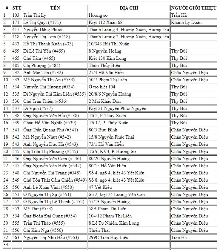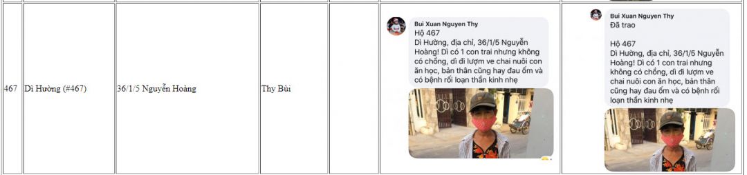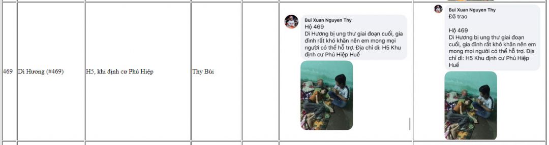 Hiện tại có  nhiều hoàn cảnh cần được khảo sát và giúp đỡ kịp thời Nhanh chóng nên nhóm Huế chúng em Tín nhiệm đề xuất chị Hà Trần là người đã theo Sâu sát chương trình Này bố trí phân chia thứ tự số Hộ khảo sát riêng cho từng đội để khi các đội Huế đi khảo sát về sẽ gửi hình ảnh các hoàn cảnh của các đội khảo sát lên kịp thời và khi được duyệt tiền thì chị Trần Hà sẽ bố trí số suất quà rãi điều cho các đội để chạy trao quà và cập Nhật hình ảnh trao quà! Hiện Huế có 4 đội chia ra để khảo sát, trao quà và mỗi đội sẽ chạy chương trình  khảo sát cho từng khu vực để tránh lập lại hoàn cảnh được giúp và tạo trật tự số thứ tự, không chồng chéo cho mỗi chương trình, hôm nay nhóm em vừa trao 35 suất quà, trao xong nhóm e cập Nhật lên diễn đàn và nếu có sai sót các thành viên trong nhóm Nguyên Thy sẽ trực tiếp giải đáp để đảm bảo độ mình bạch của chương trình, tương tự nhóm chị Khánh Ly, chị Hà Trần và chị Quỳnh Anh cũng vậy ạ!