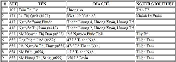 Các bạn ơi, Chi đã cập nhập thêm các trường hợp mn bổ sung rồi tuy nhiên vẫn còn 4 t/h hợp sau vẫn chưa có ảnh trao quà nha: Stt 171; 417; 418 & 623. Mn kiểm tra lại và bổ sung hình ảnh để Chi cập nhập và đóng sổ chương trình ở Huế nhé!