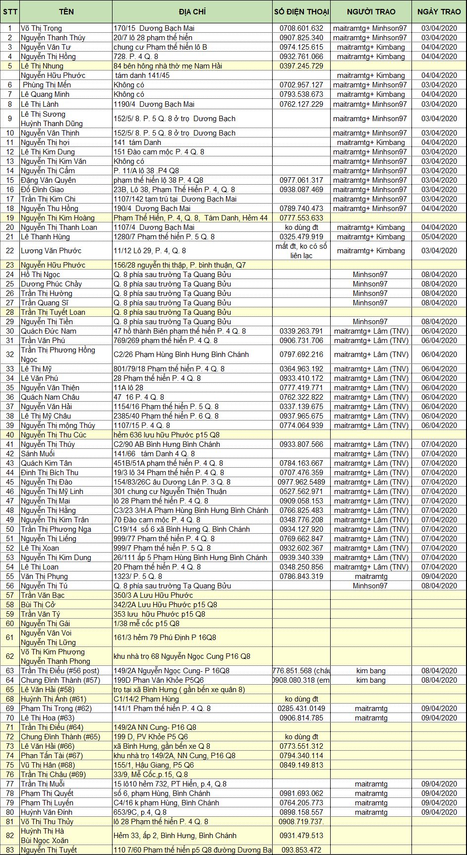 Chi xin được cập nhập bảng thống kê chi tiết các trường hợp đã được giới thiệu để mọi người tiện theo dõi. Số liệu được tính đến ngày 10/04/2020: