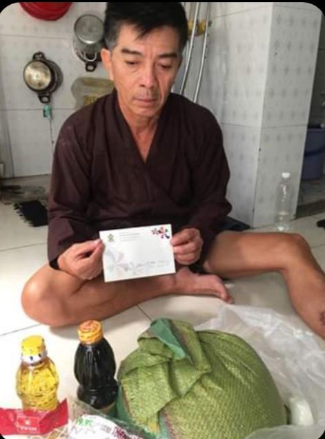 Anh hiện đang ở Cần Đước cùng với cha mẹ già và người em, công việc của anh là bán vé số lo cho cha mẹ già, anh biết được chương trình hỗ trợ bà con nghèo bán vé số,lượm ve chai... khó khăn trong mùa dịch của chúng ta. Nên đã đi xe ôm lên để xin trợ giúp cho hoàn cảnh của anh.