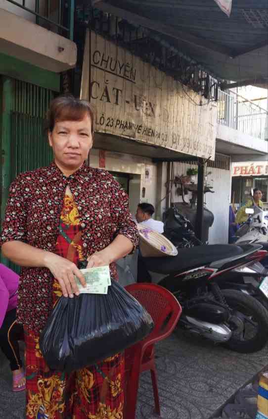 Hình ảnh chị Chân nhận quà cộng với 200k xin gửi đến cả nhà cùng nắm được.