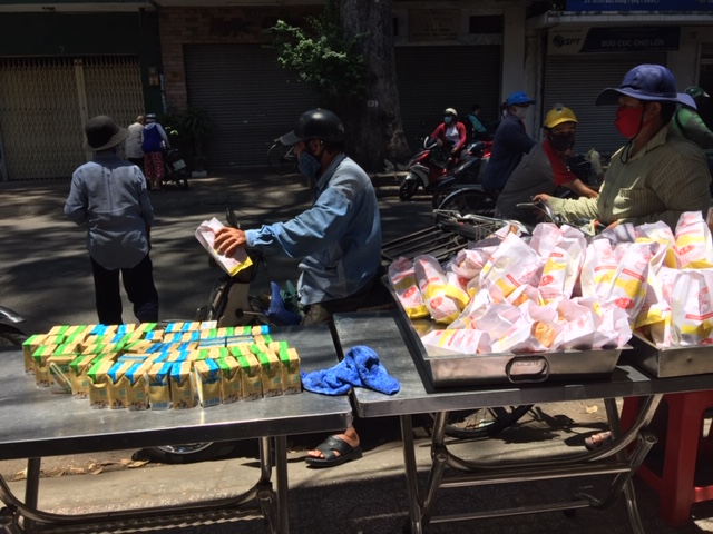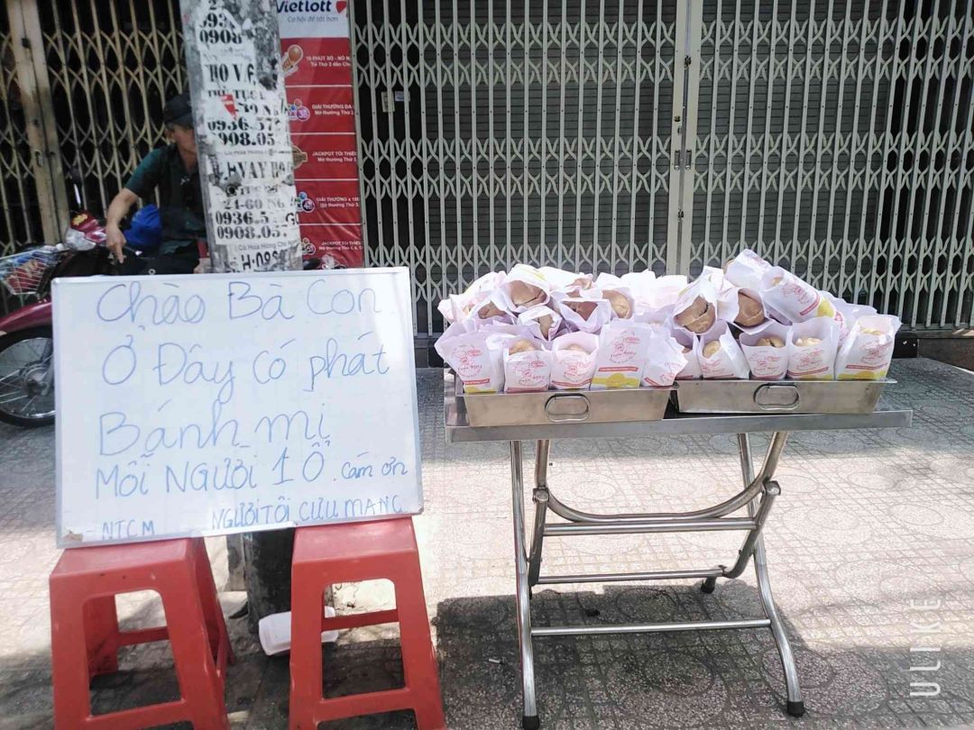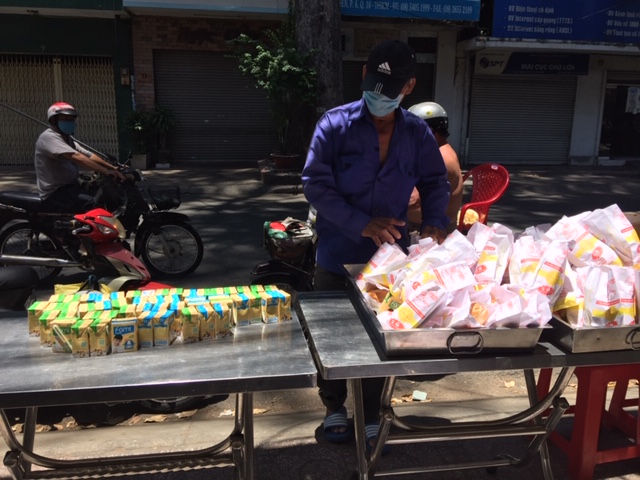 Hôm nay là ngày thứ hai chúng ta chạy chương trình phát bánh mì thịt cho bà con, những hoàn cảnh khó khăn trong mùa dịch.