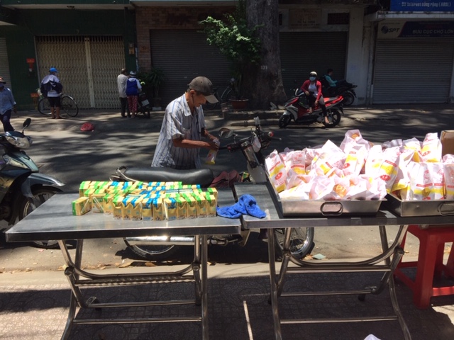 Trưa nay chúng ta phát 150 phần bánh mì và sữa đậu nành cho bà con tại Quán Cơm 2,000.