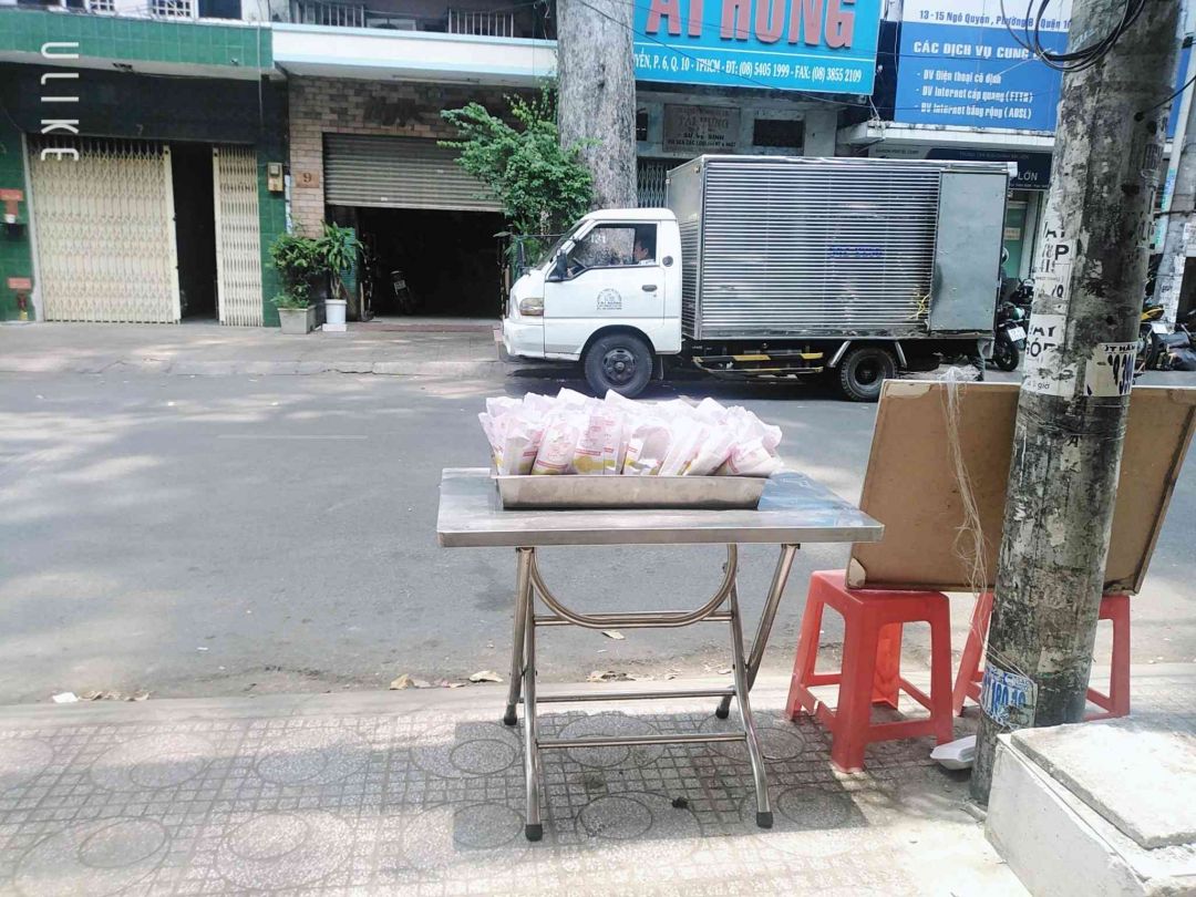 Trước mắt phát tại trước cổng của Quán Cơm 2000đ - SG