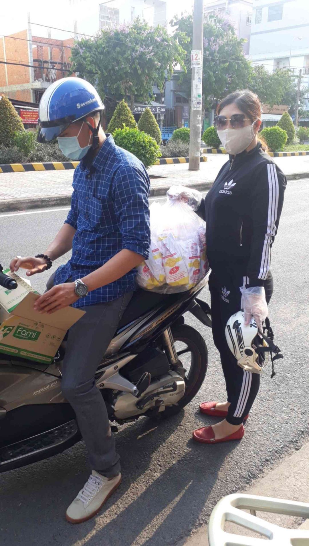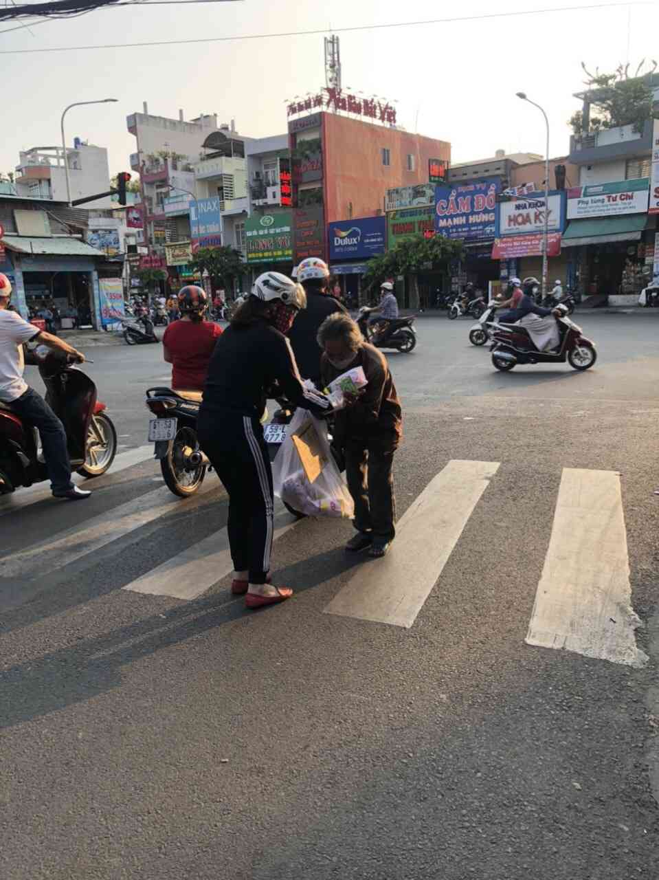 Hình ảnh nhóm bạn của Nhung trai bánh mì cho bà con ngày hôm qua.