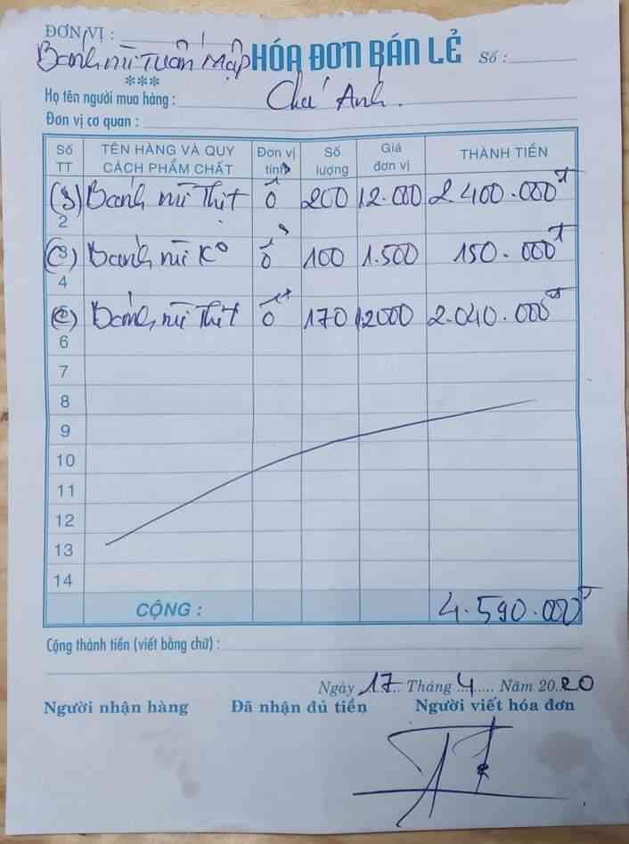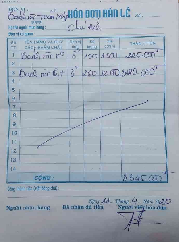 Quỹ ủng hộ hoàn cảnh khó khăn mùa covid19 đã chuyển TK Lò bánh mì Tuấn Mập 12,405,000đ theo hóa đơn ngày 11,12,13/4/2020.