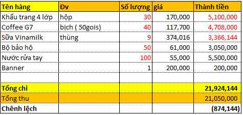 Cập nhập thu chi ngày 10/4.