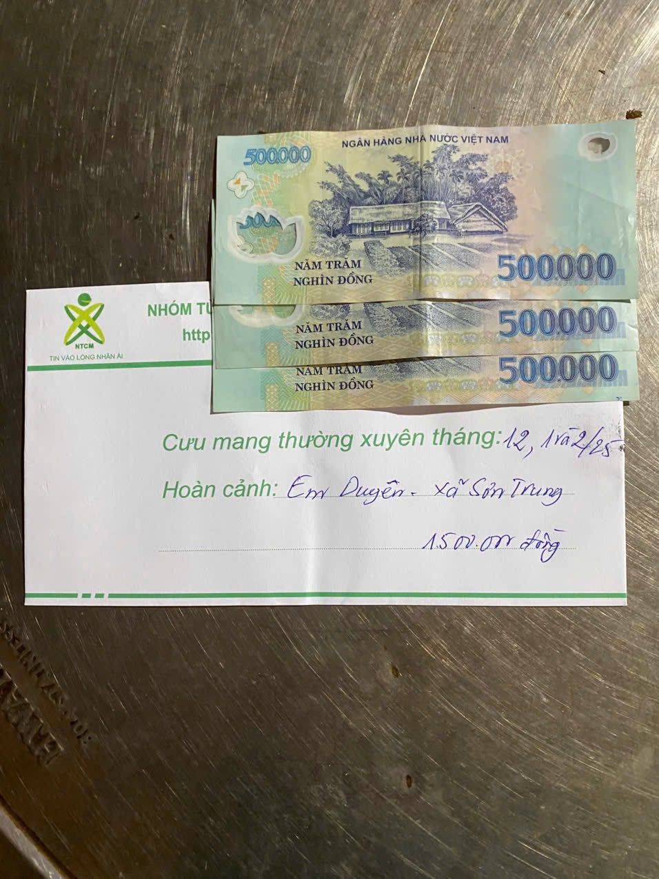 Trong thời gian chờ có sự chung tay của cả nhà chúng ta sẽ xuất quỹ NTCM để CMTX gia đình chị Duyên 500,000₫/tháng trong thời gian 3 tháng kể từ tháng 12/2024 các bạn nhé.