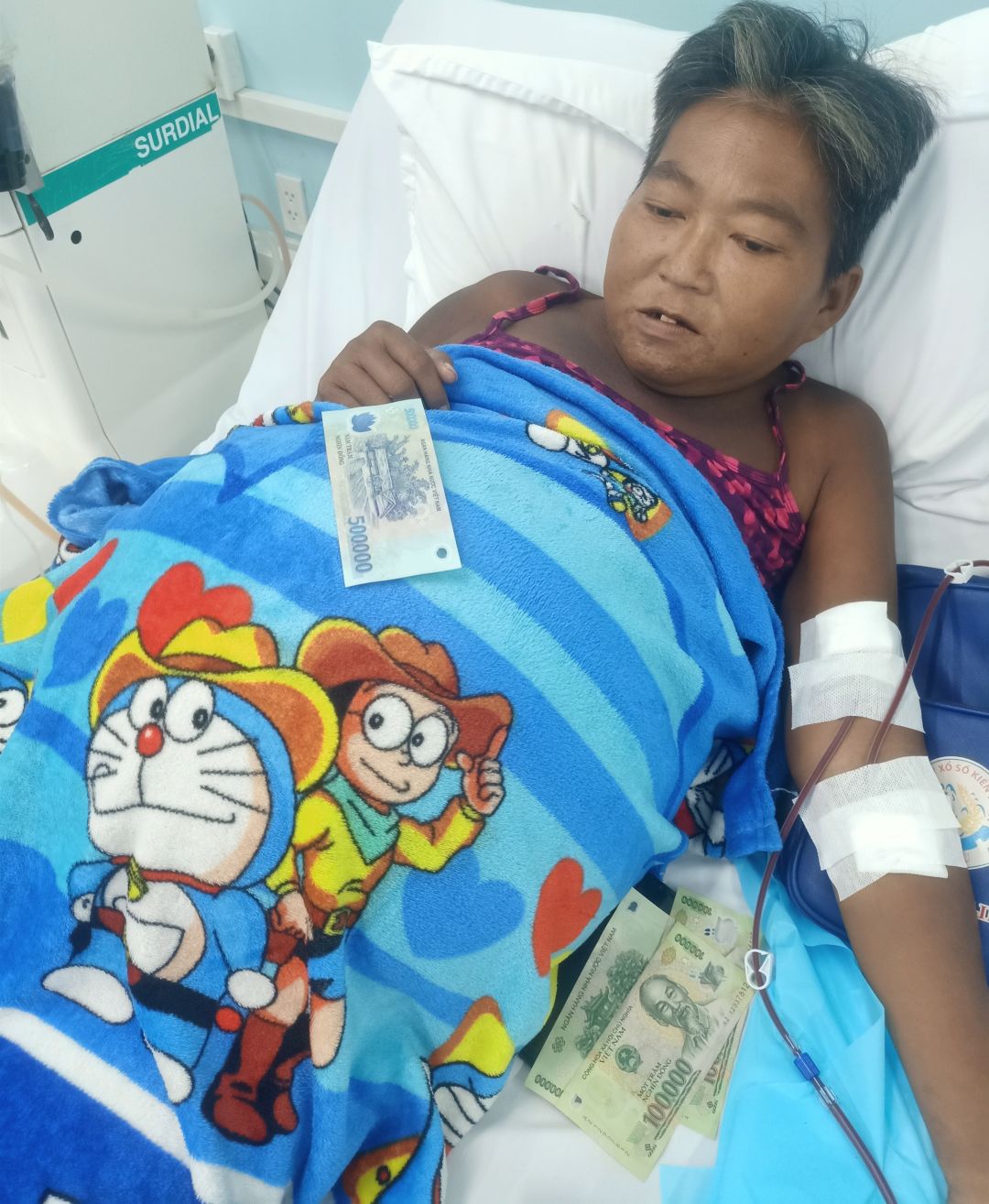 Em Ngọc đang nằm bệnh viện chạy thận nên Hôm nay Mai Trâm đã tới Bệnh viện Q8 để trao quà của nhóm cô Thảo gửi tặng đến Ngọc 500k + thùng mì.