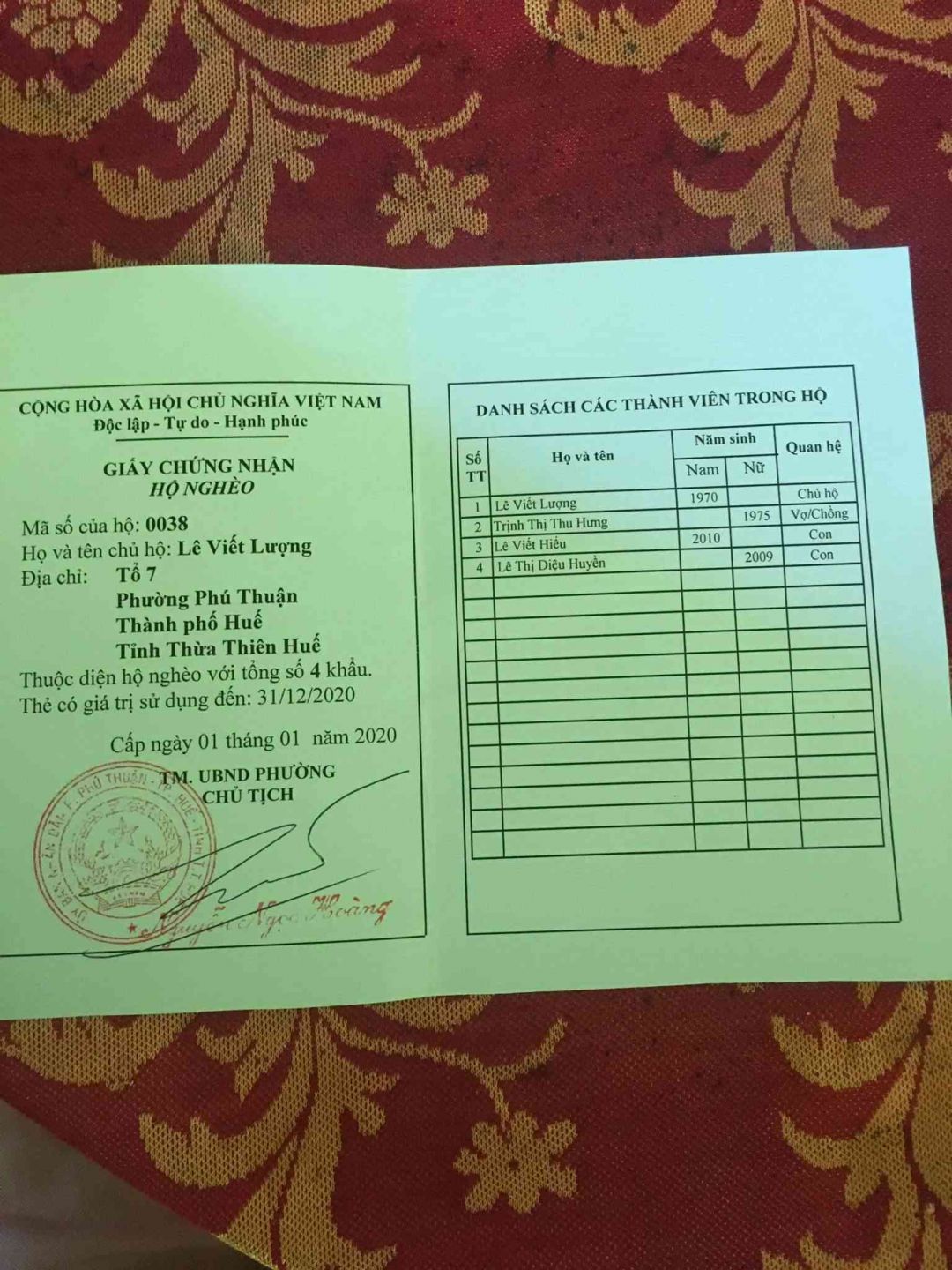 Cảm ơn cả nhà. Mong mọi người giúp đỡ vì gia cảnh này đã cùng kiệt (đến miếng ăn hằng ngày cùng chờ trợ giúp từ xóm làng).