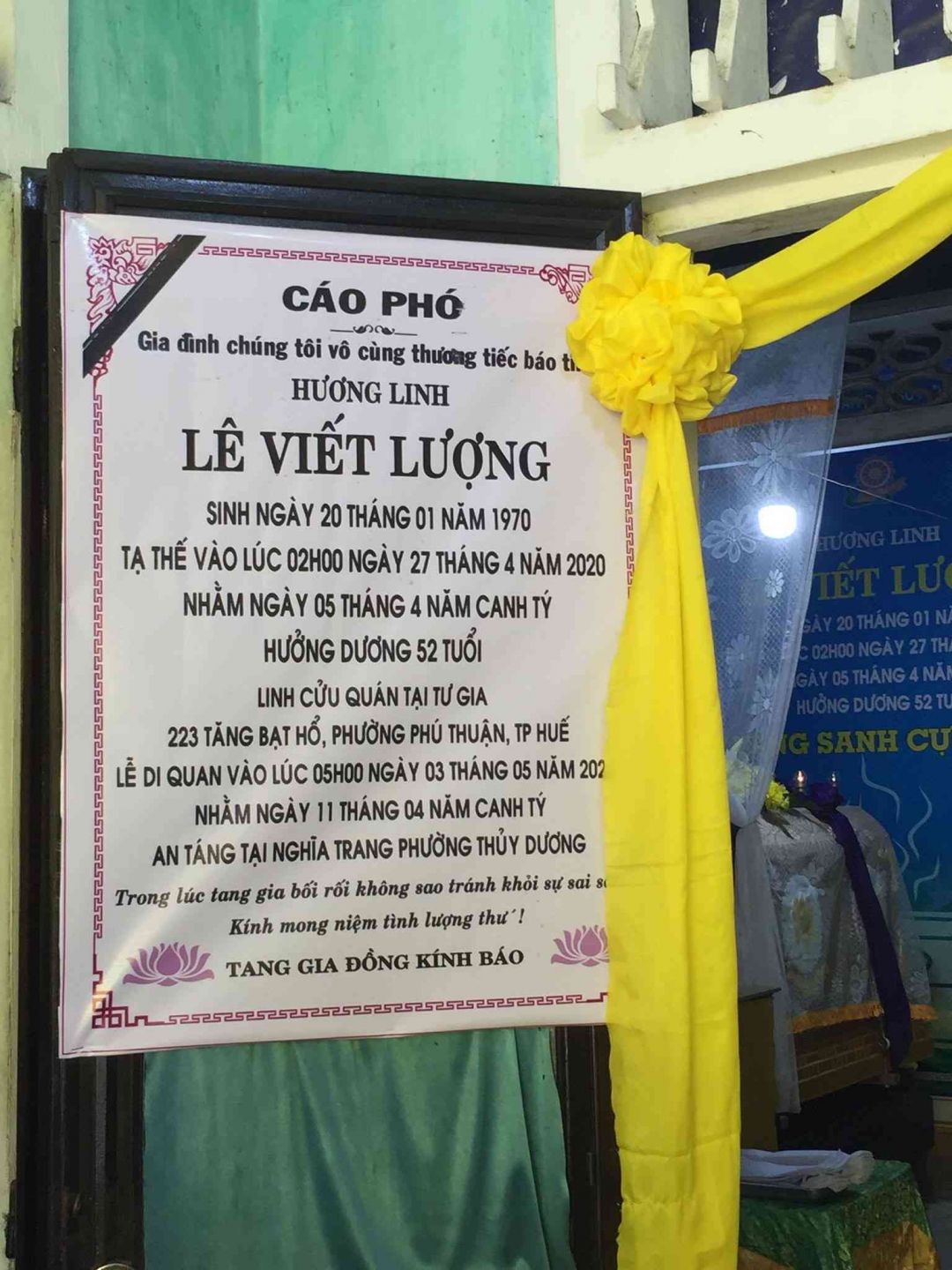 Chiều mai (1.5.2020, vào lúc 14h30 nhóm NTCM tại Huế sẽ đi phúng điếu ạ.