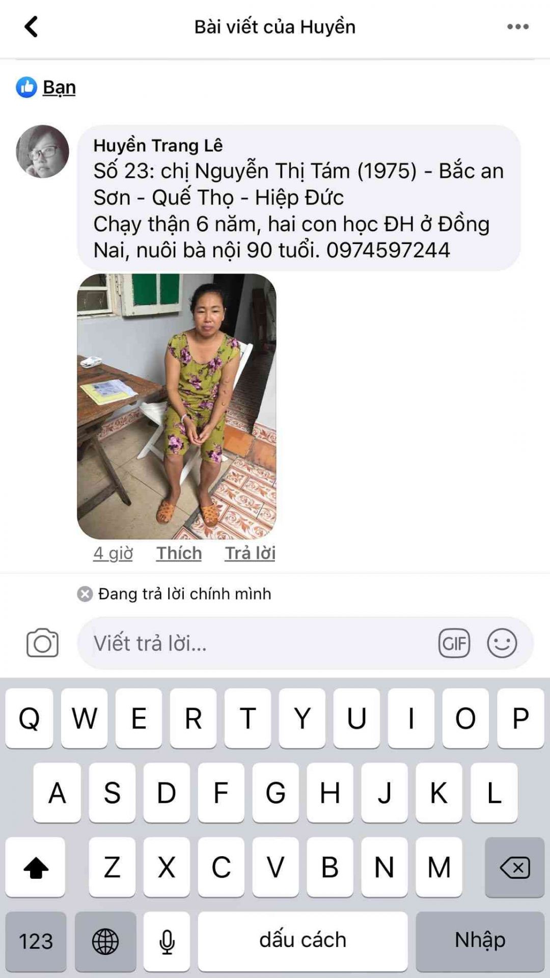 Số 17: Bà Võ Thị Hồng 73 tuổi, thôn Đại Lộc, xã Quế Minh, Quế Sơn, QN.