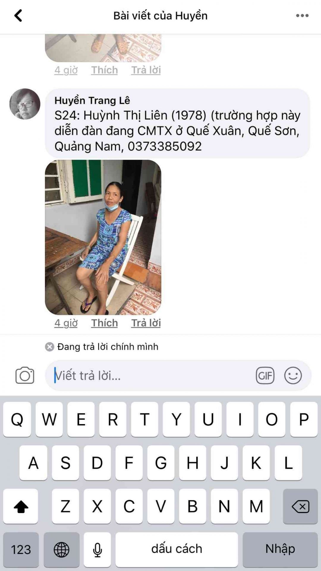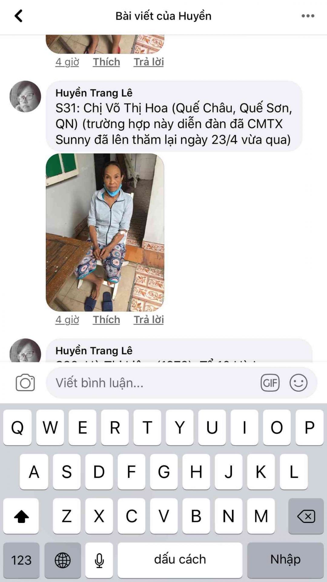 Số 17: Bà Võ Thị Hồng 73 tuổi, thôn Đại Lộc, xã Quế Minh, Quế Sơn, QN.