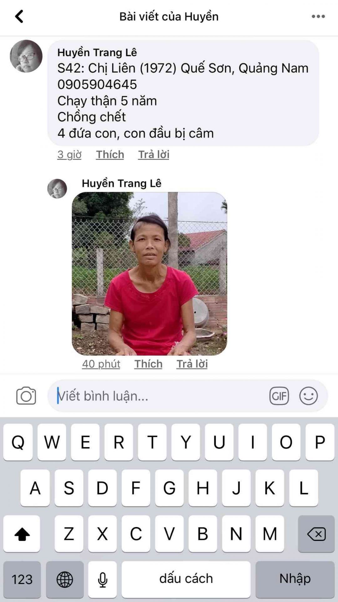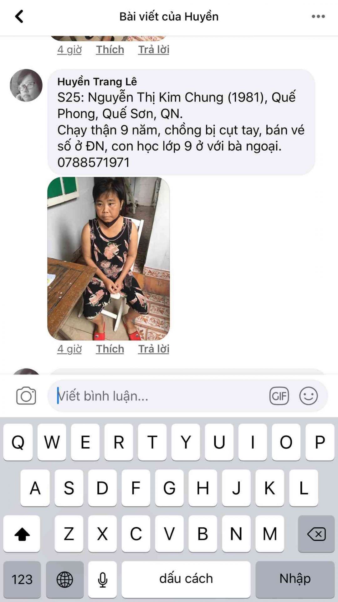 Số 20: Phạm Thị Thân, 65 tuổi, Diên Lộc, Quế Minh, Quế Sơn, QN. bị bướu, đau cột sống, ko làm ruộng được - ko có chế độ gì, có con gái lấy chồng thứ 2 nghèo quá nên cháu ngoại đầu phải gửi trại mồ côi ở ĐN.