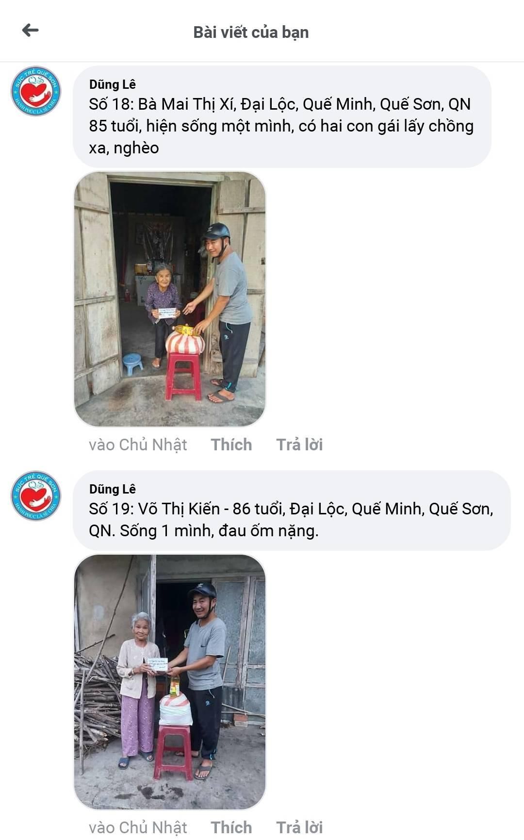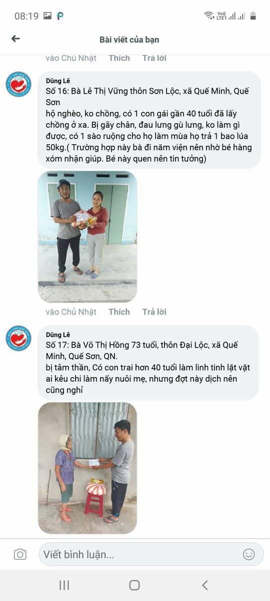 Cập nhật hình ảnh trao quà Hỗ trợ người nghèo mùa Covid khu vực Quế Sơn-Quảng Nam.  Do thời gian vừa rồi cuối tuần gặp mưa giông miết nên việc trao quà bị chậm, mong cả nhà thông cảm. Hình ảnh 36 suất, còn 4 suất e sẽ cập nhật sớm! Cảm ơn cả nhà thân iu!!