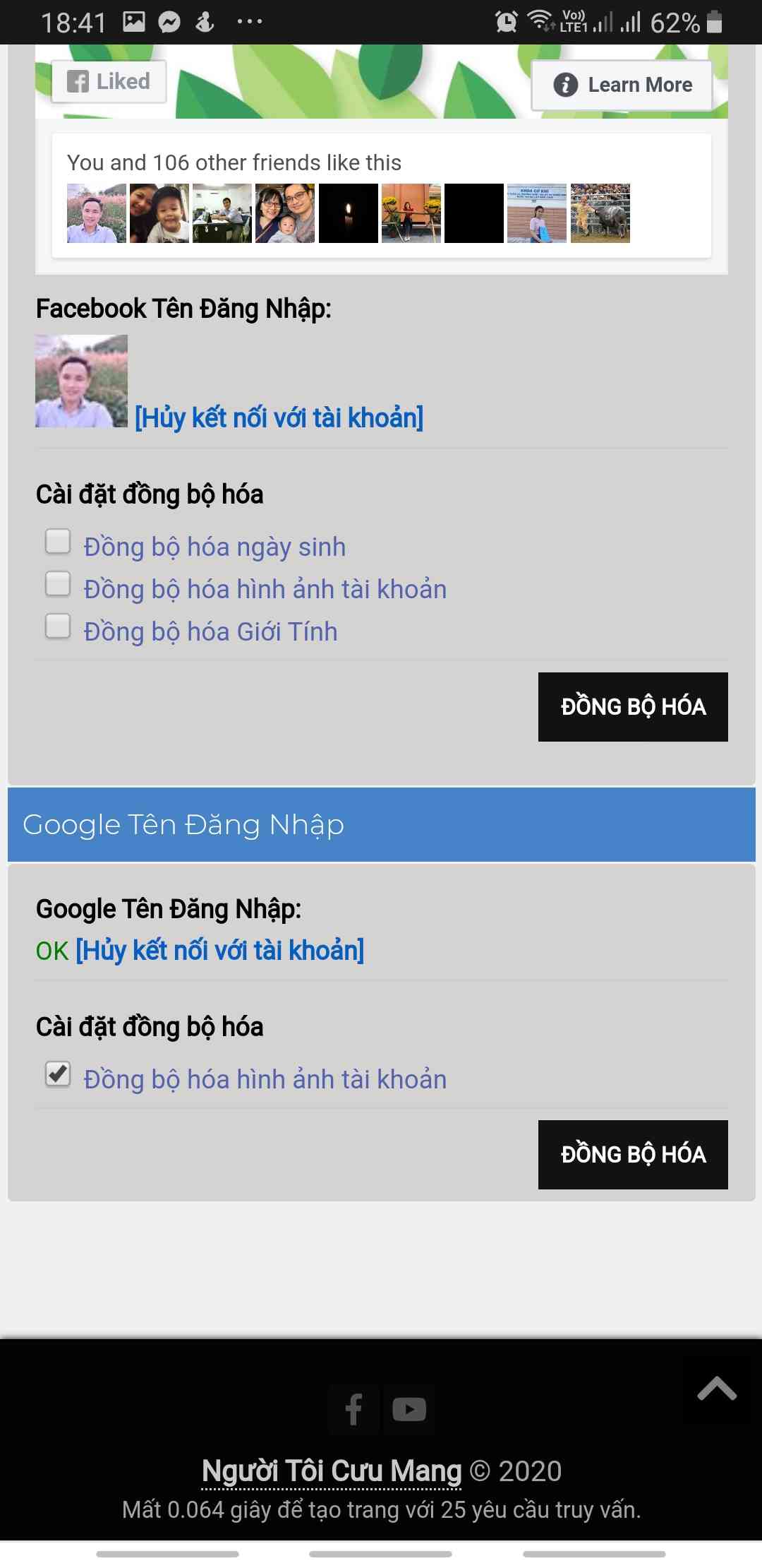 Bước 5: sau khi đồng bộ thành công bạn có thể chọn những dấu tích vào " Đồng bộ hóa ngày sinh, đồng bộ hóa hình ảnh, giới tính" và nhấn đồng bộ để có được hình đại diện đẹp như facebook hoặc gmail của bạn.