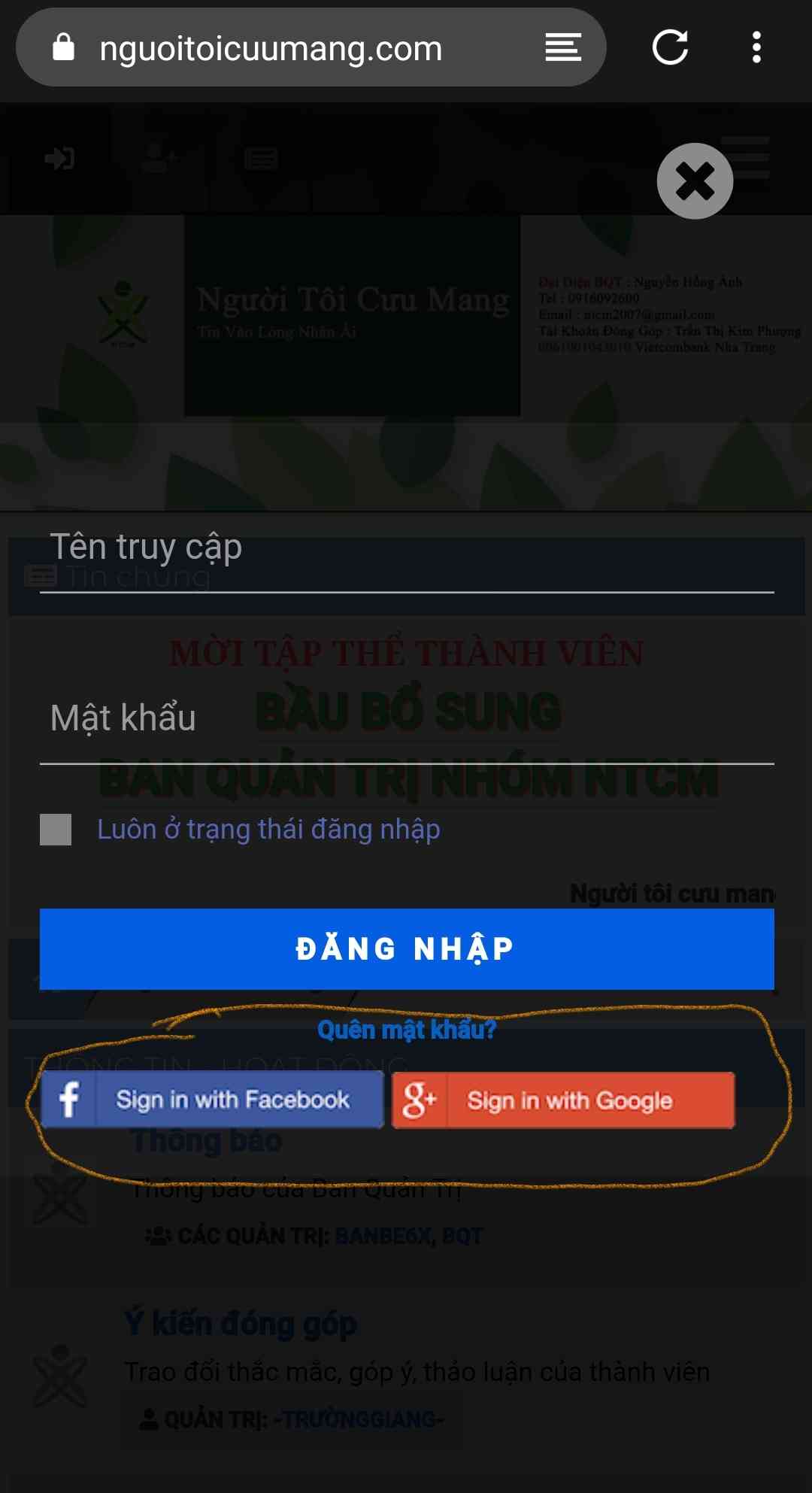 Lưu ý: Những bạn chưa có nick của diễn đàn chỉ cần nhấn vào nút đăng nhập bằng facebook hoặc google là có thể đăng nhập bằng 2 bước đơn giản: